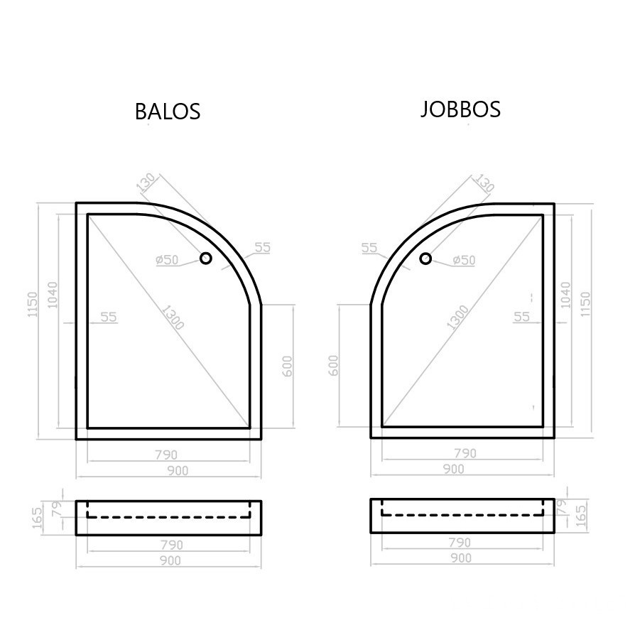Favorit HEDO zuhanytálca íves aszimetrikus JOBB – szaniter akril – 115 x 90 cm