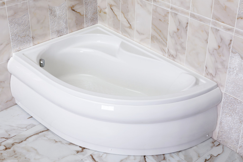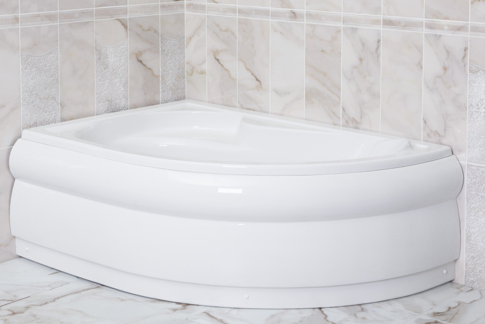 Favorit SIESTA L aszimmetrikus szaniter akril kád BALOS előlappall- állvánnyal 150 x 100 cm