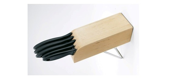 Nyírfából készült késblokk öt darab késsel. A késblokk tartalma: 1 db Hámozókés (7 cm) 1 db Hámozókés (11 cm) 1 db Kenyérvágó kés (23 cm) 1 db Konyhai kés (21 cm) 1 db Japán szakácskés (17 cm) Korábbi modell neve: KitchenSmart késblokk 5 késsel – cikkszáma: 837091
