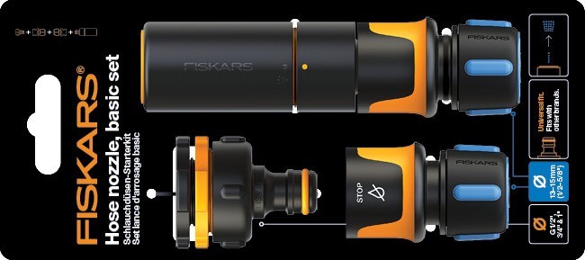 Alapkészlet öntözéshez. Tartalma univerzális csapcsatlakozó, 2 db 1/2 gyorscsatlakozó, fúvóka.