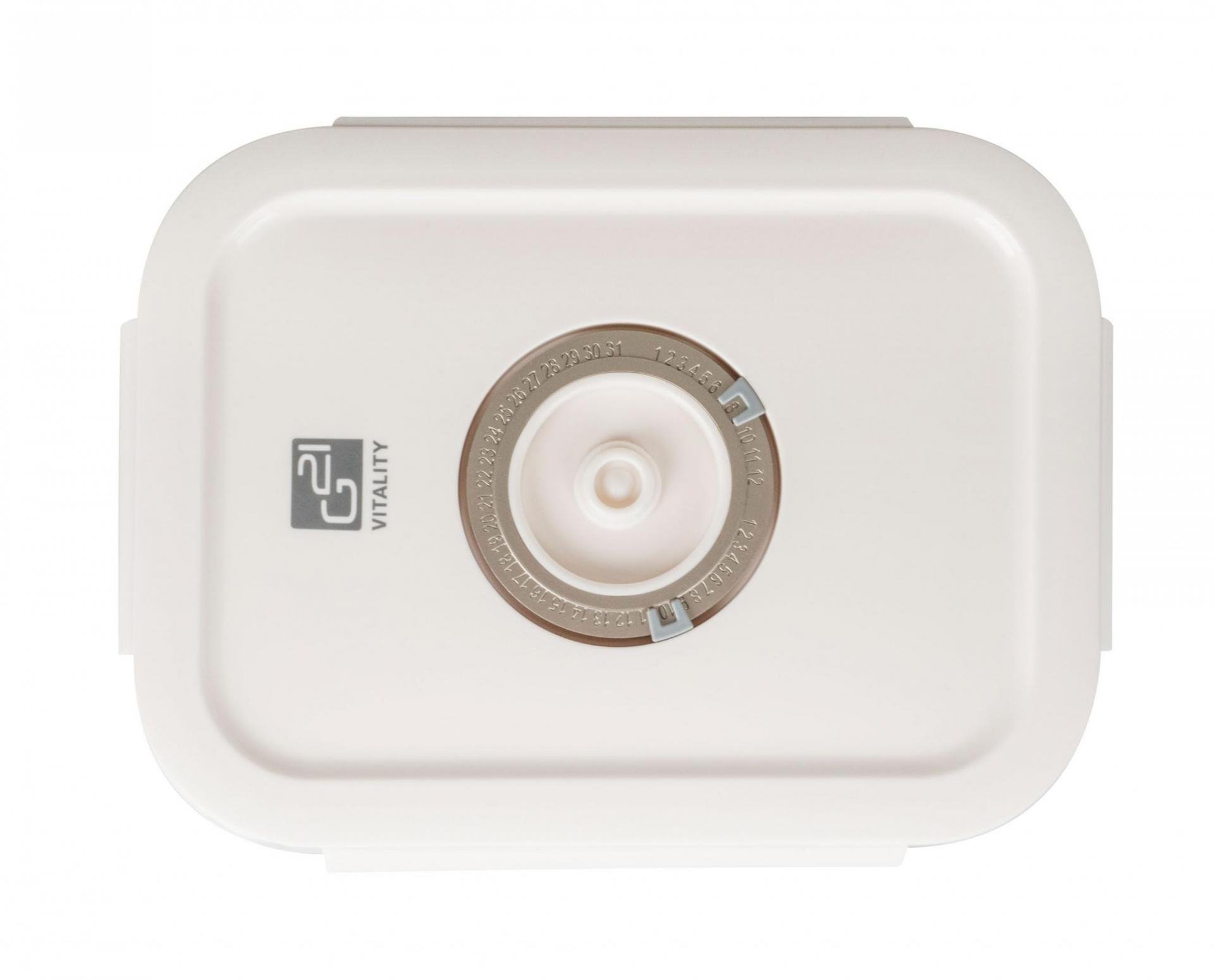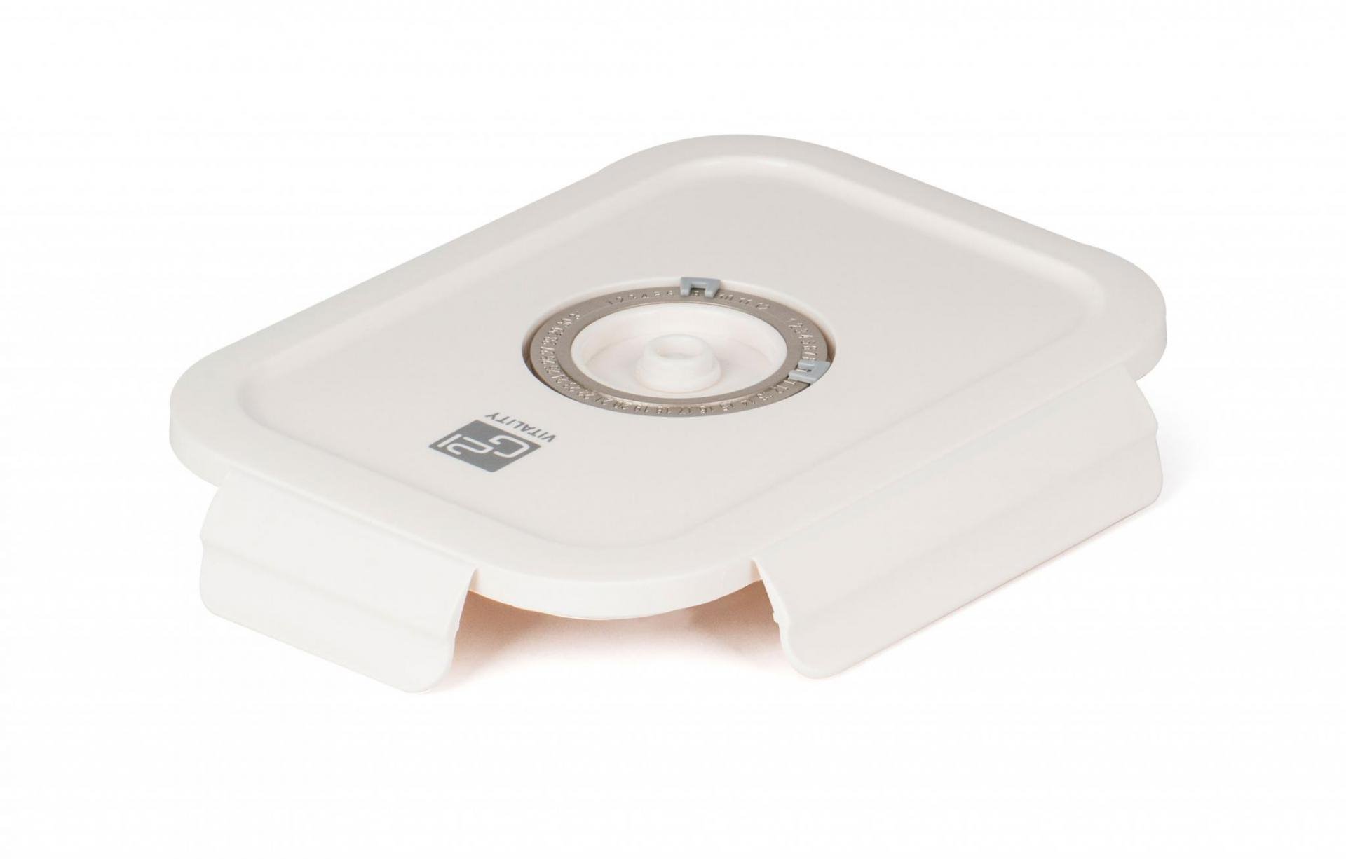 A vákuumszeleppel és dátumbeállítóval ellátott tető segít nyomon követni, mikor vákuumoztuk az ételt vagy meddig tartható. A vákuum egyszerűen kiengedhető a szelep enyhe megnyomásával.