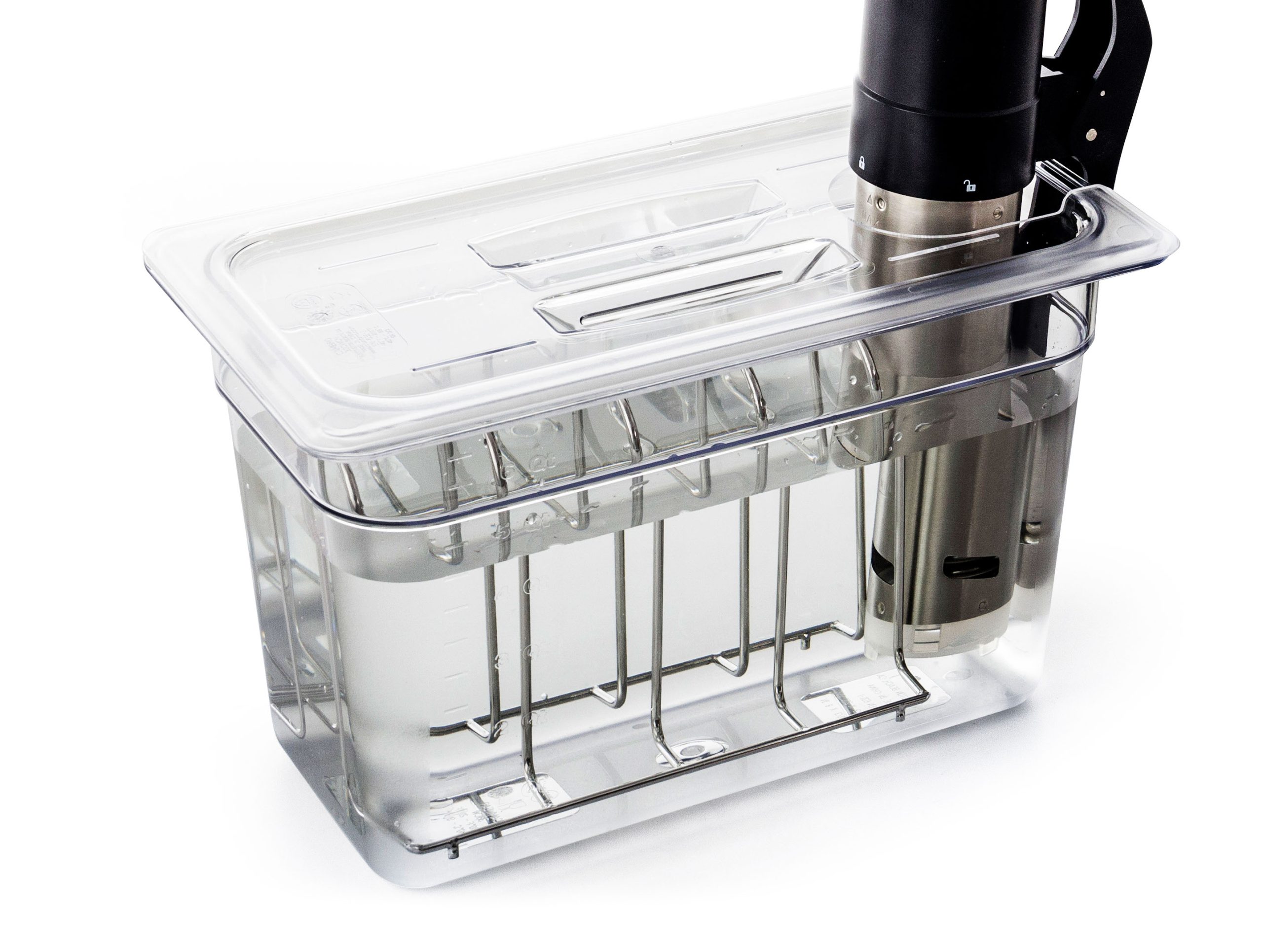 Próbálja ki a praktikus kiegészítőnket a sous-vide főzéshez. A 4 férőhelyes állvány a sous-vide főzés alatt stabilan tartja a vákuumcsomagolt hús és más alapanyagokat.