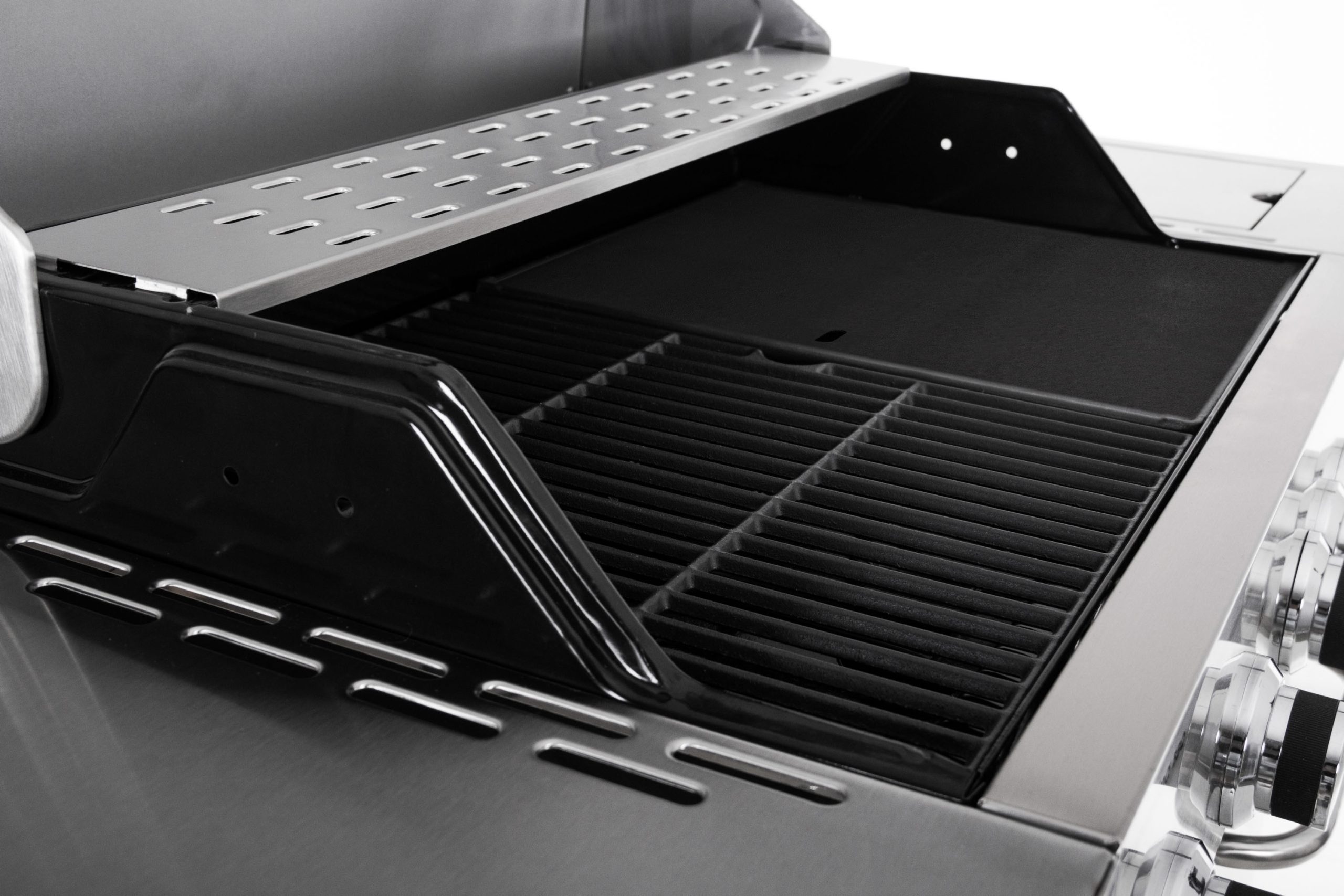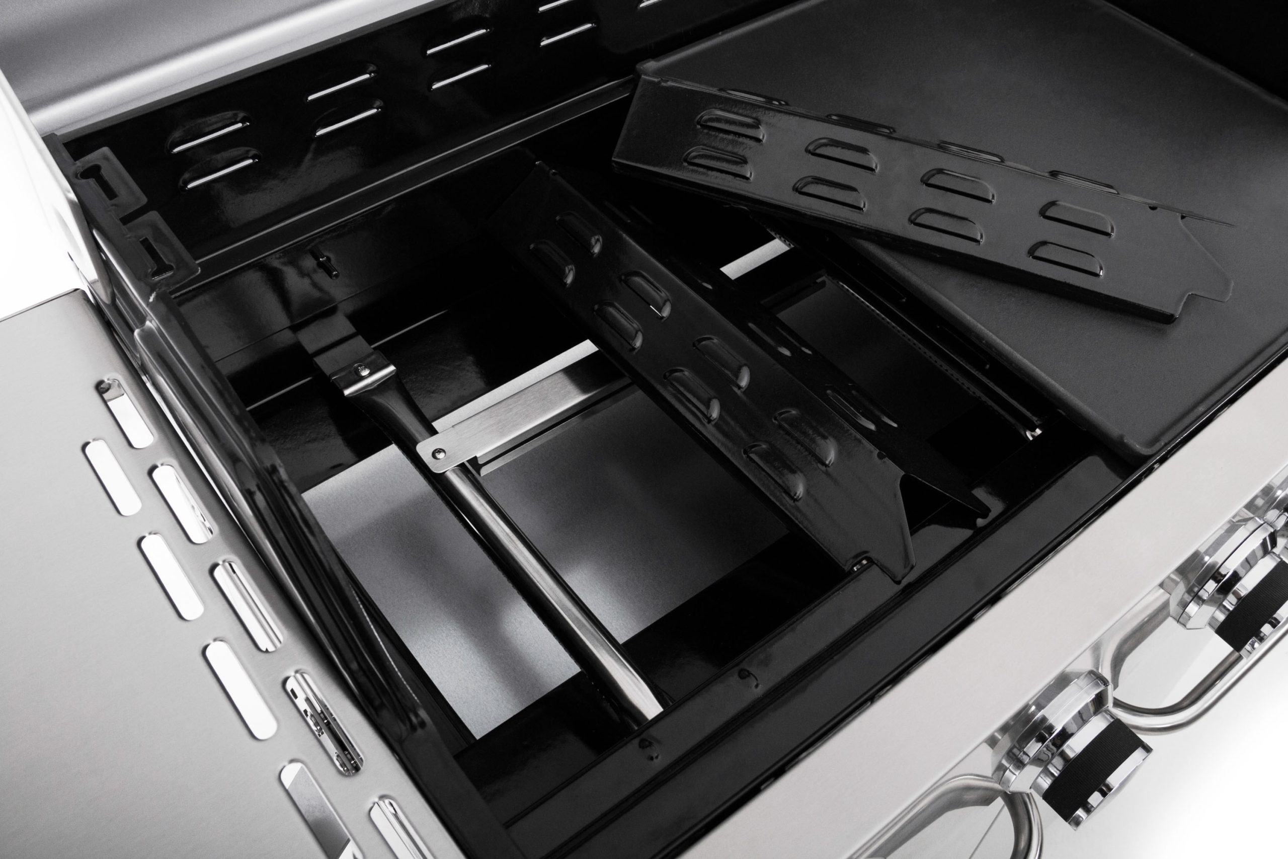 - a Flame Tamer rendszer zománcozott égőfej fedelekkel megvédi az égőfejeket a csöpögő zsírtól és meghosszabbítja az élettartamukat