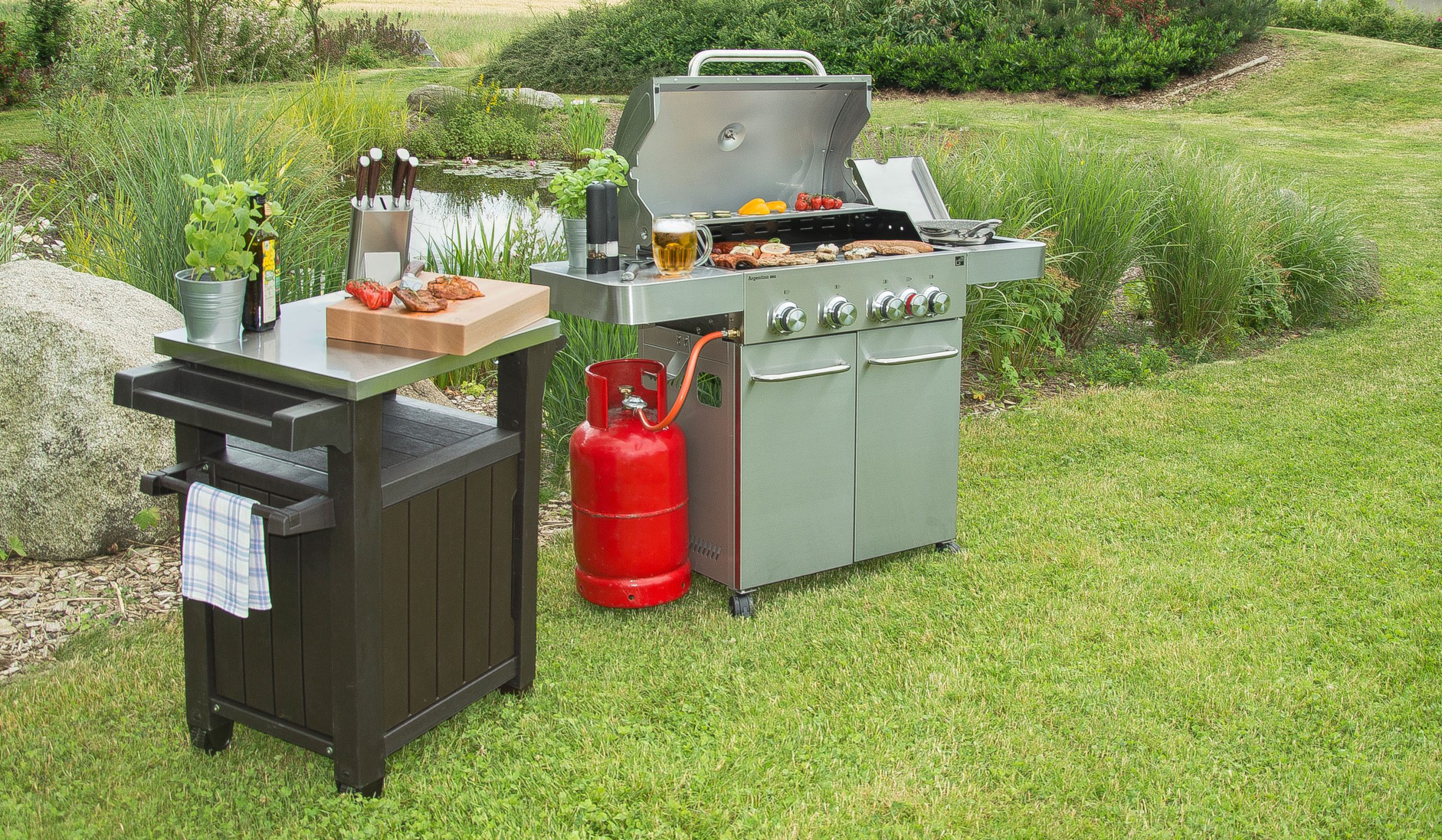 - mozgás – 4 kerék fékkel a grill egyszerű áthelyezése és az egy helyben maradása érdekében