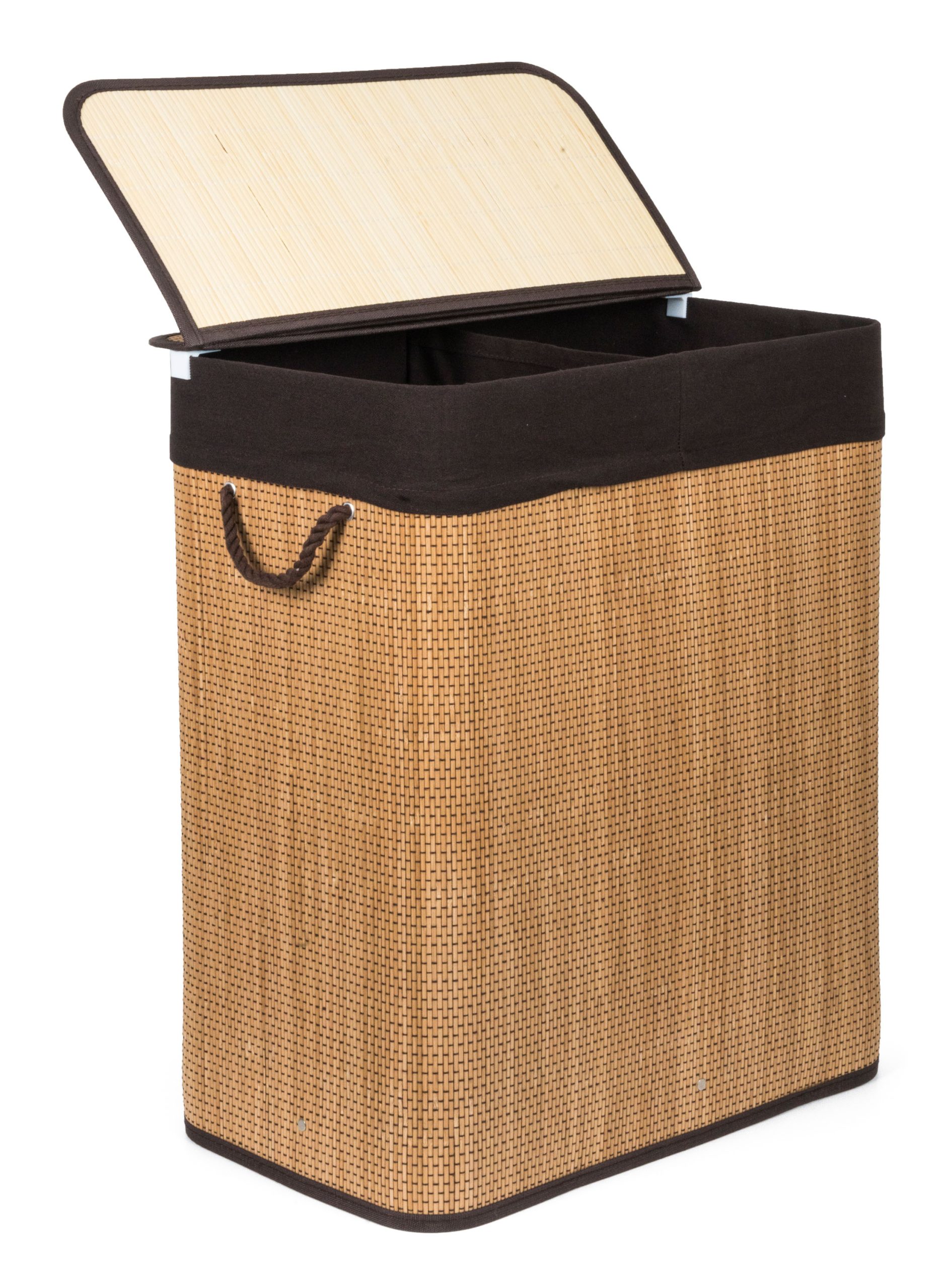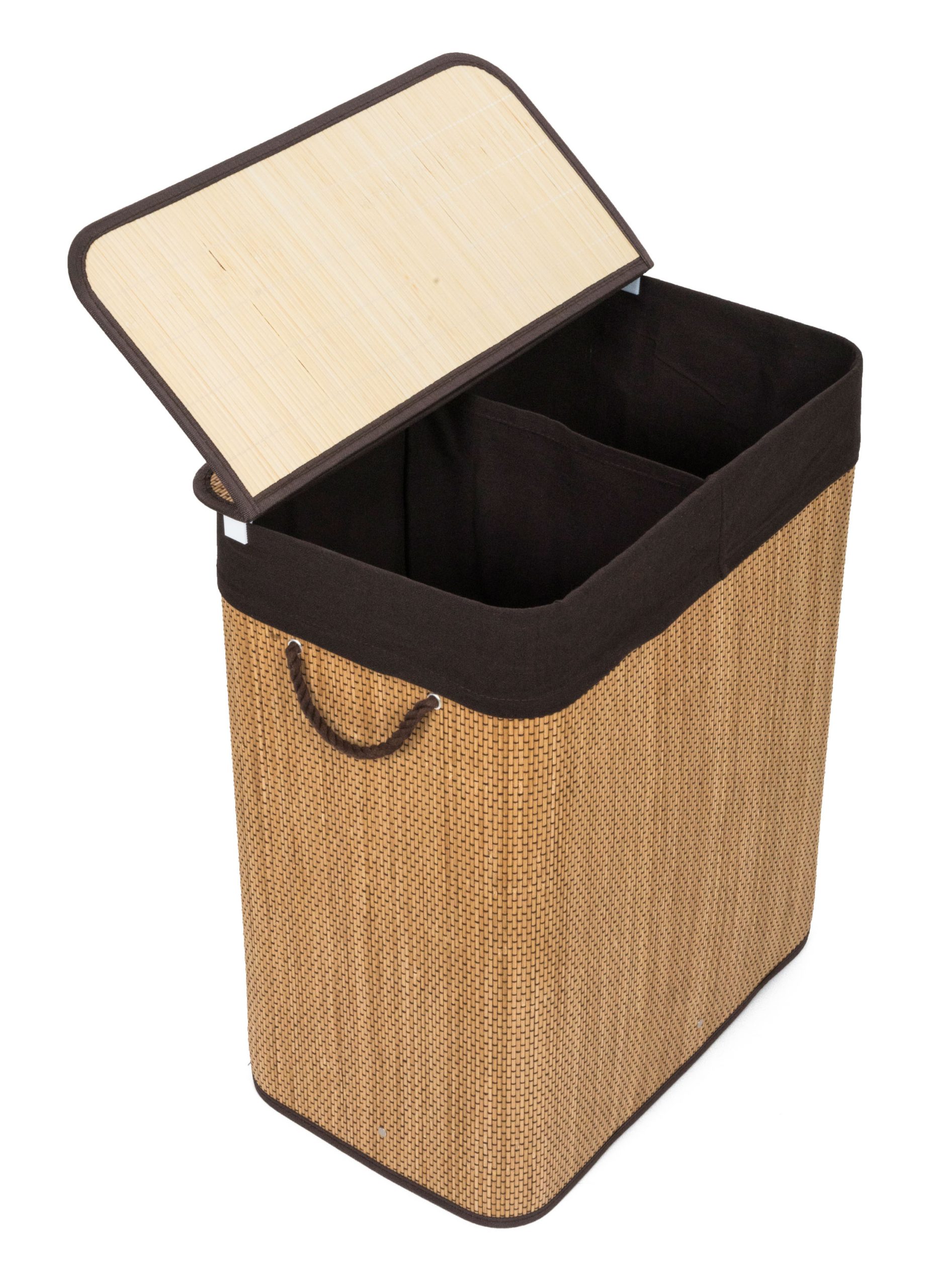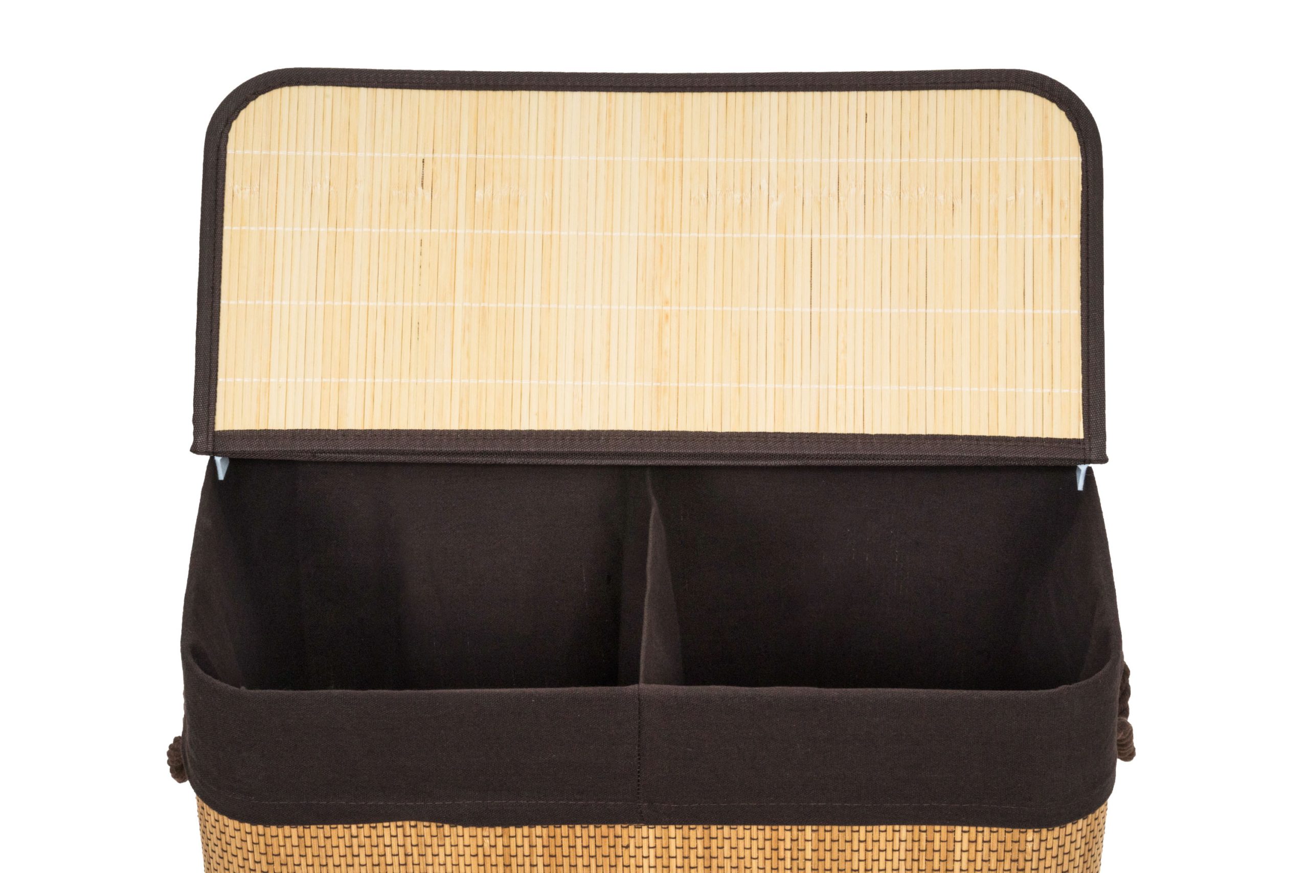 G21 bambusz szennyeskosár,105 l kapacitású, barna betéttel, elválasztó elemekkel