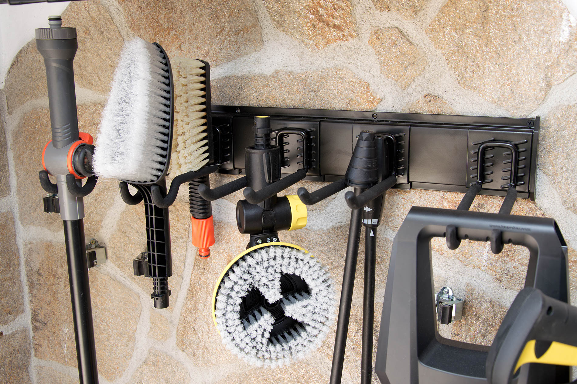 rögzítése egyszerű és lehetővé teszi bármilyen típusú szerszám biztonságos felakasztását. A polc a 61 x 10 cm méretű tartórúdra akasztható, amely összeköthető az összekötővel és lezárható a lezáróval.