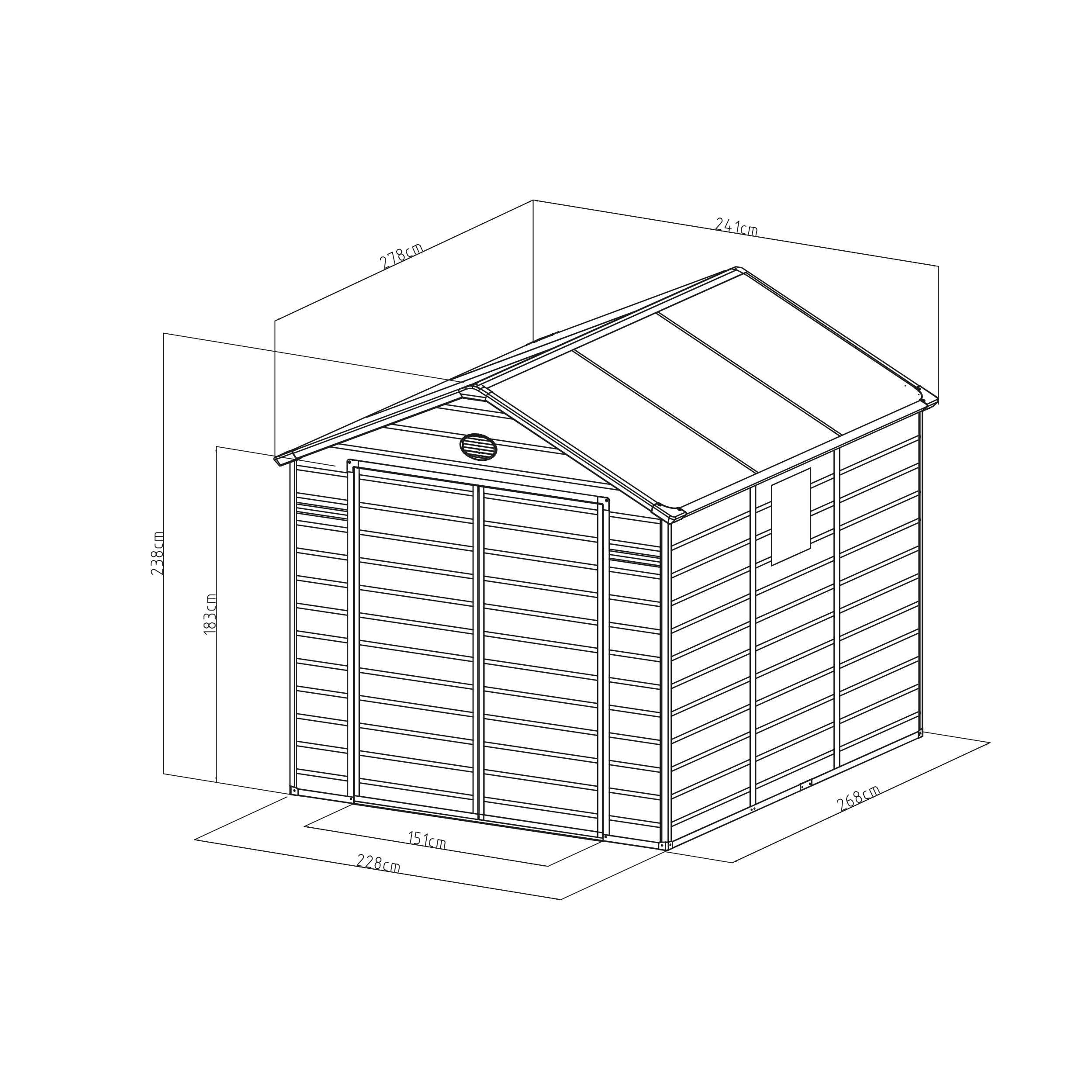 A G21 kerti ház szerkezete horganyzott lemezekből, műanyag oszlopokból 1,5 mm vastagságú anyagból és 12 mm vastagságú külső panelekből van összeállítva. A panelek erősített műanyag szendvicslapokból készültek. A kerti ház teteje 60 kg/m2 teherbírással lett megszerkesztve. A ház elülső felén 120 cm széles és 183 cm magas kétszárnyú ajtó van elhelyezve, amely biztosítja az egyszerű hozzáférést.