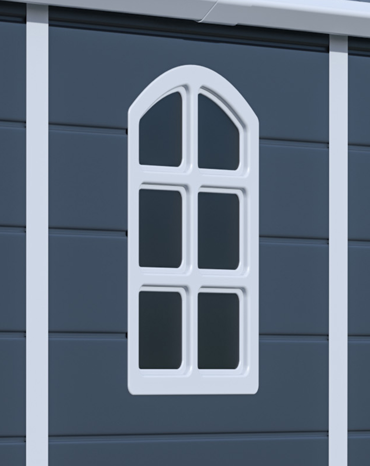 Egy igazi kerti házban nem hiányozhat egy kis ablak. A mi kerti házunknál sem hiányzik, ráadásul elhelyezhető akárhova szeretné. Ne hagyja magát korlátozni fényhiánnyal és ne gondolkozzon, hogy a tárolót a háza falához vagy szabad térben állítsa-e fel. Az elegendő fény nem fogja Önt korlátozni. Az ablakot egyszerűen elhelyezheti a ház jobb vagy bal oldalára, ahol épp szüksége lesz rá.