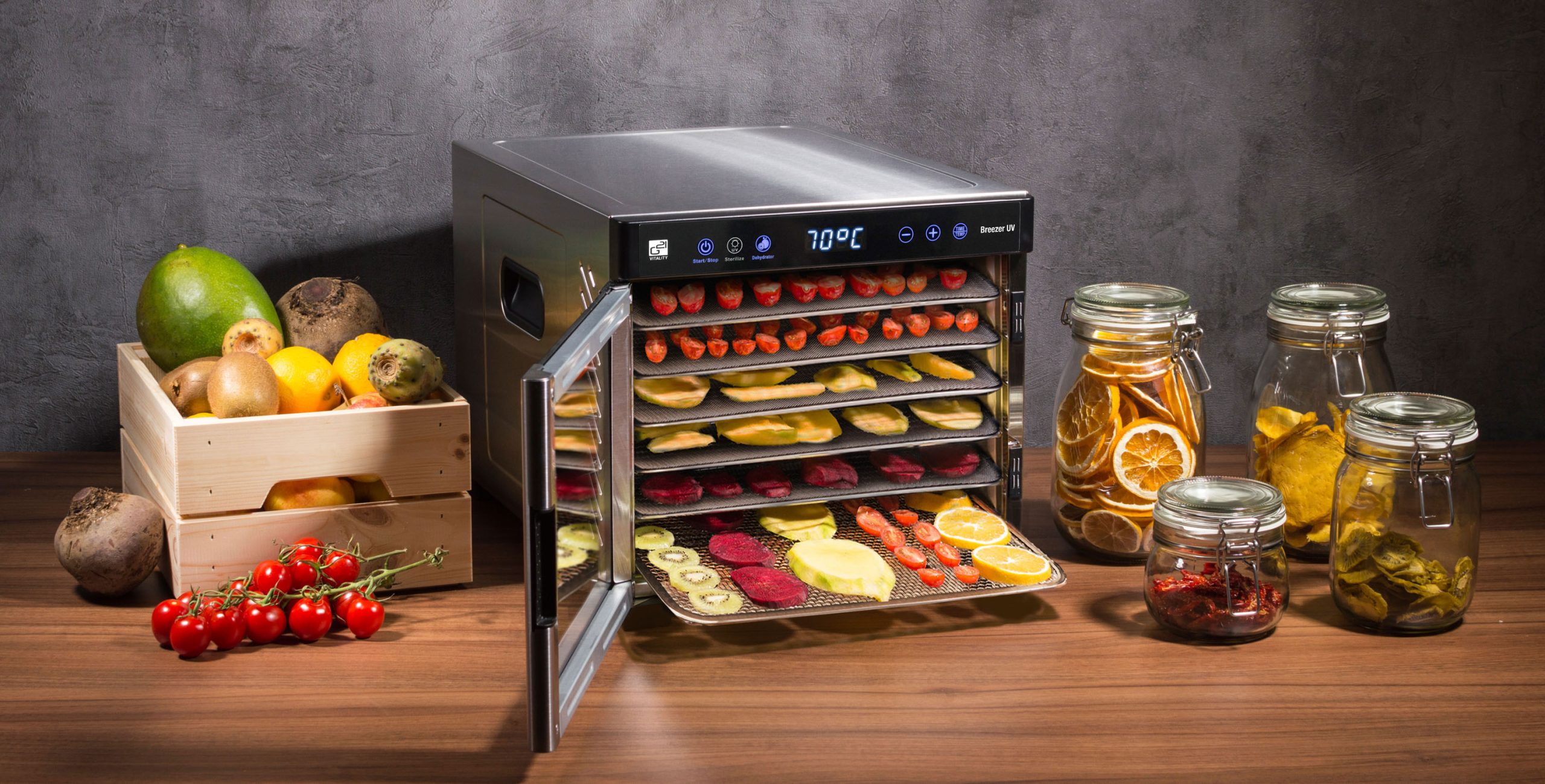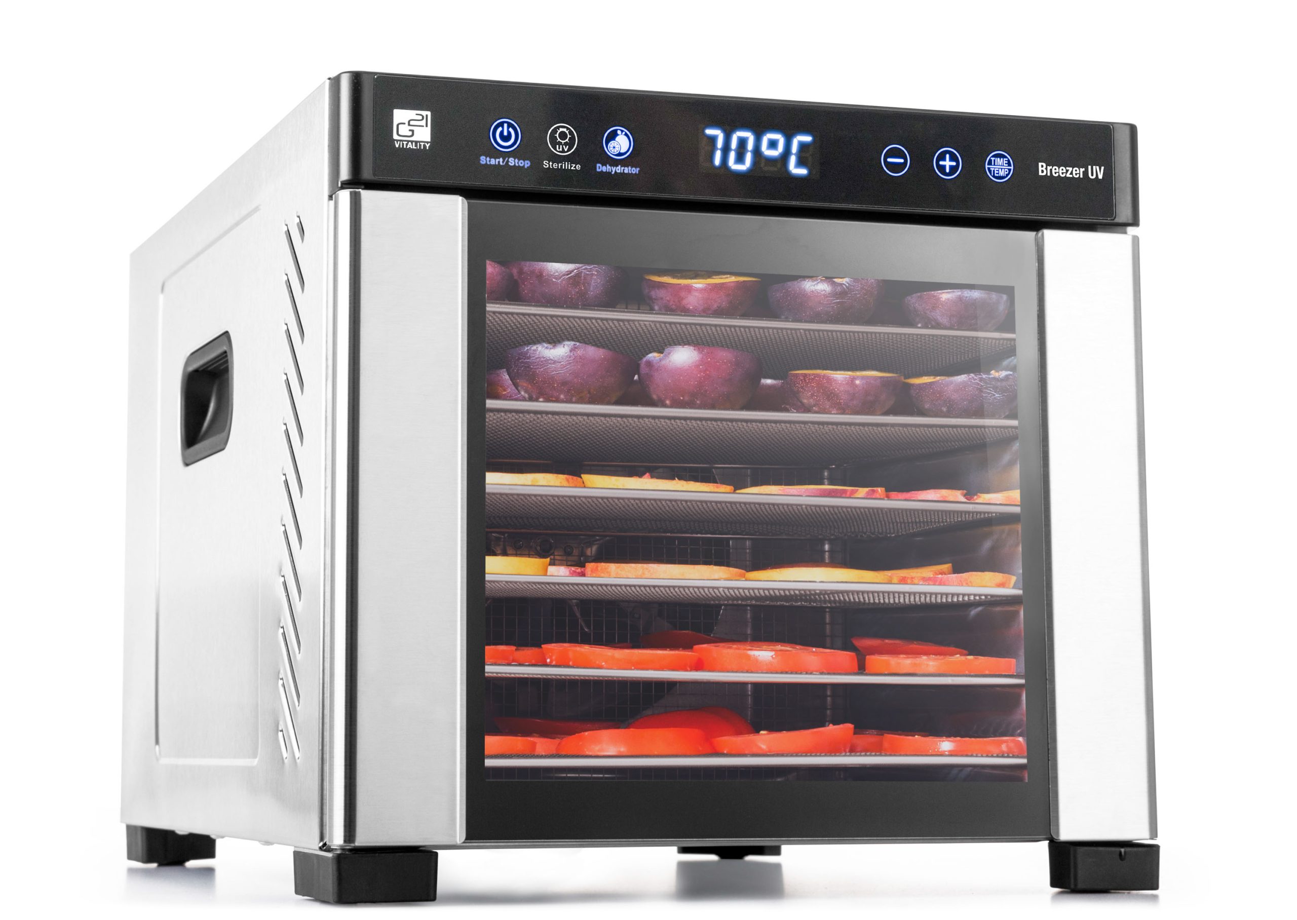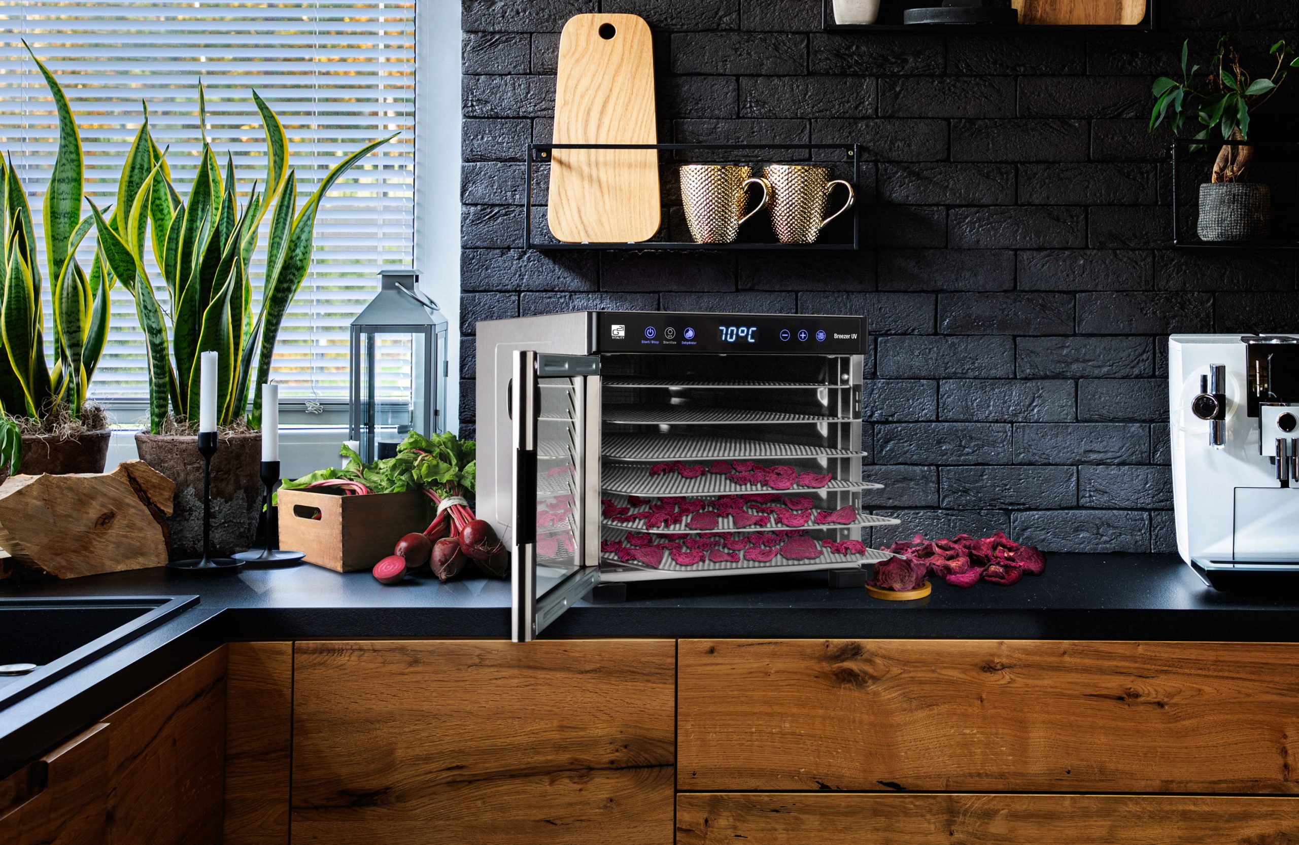A G21 Breezer vízszintes aszalógép a G21 Mistral kisebb testvére. 6 rozsdamentes acél tálcával és 6 finom szitabetéttel a kompakt kivitelének köszönhetően ideális otthoni használatra vagy kisebb munkaterületekkel rendelkező üzemekbe. Minden gyümölcsöt, zöldséget, fűszernövényt, gombát vagy húst tökéletesen, egyenletesen és egyszerűen aszal. Nem kell áthelyezni a tálcákat vagy forgatni az alapanyagokat. A karbantartással sem kell foglalkoznod – a felhasznált anyagoknak köszönhetően strapabíró és könnyen tisztítható.