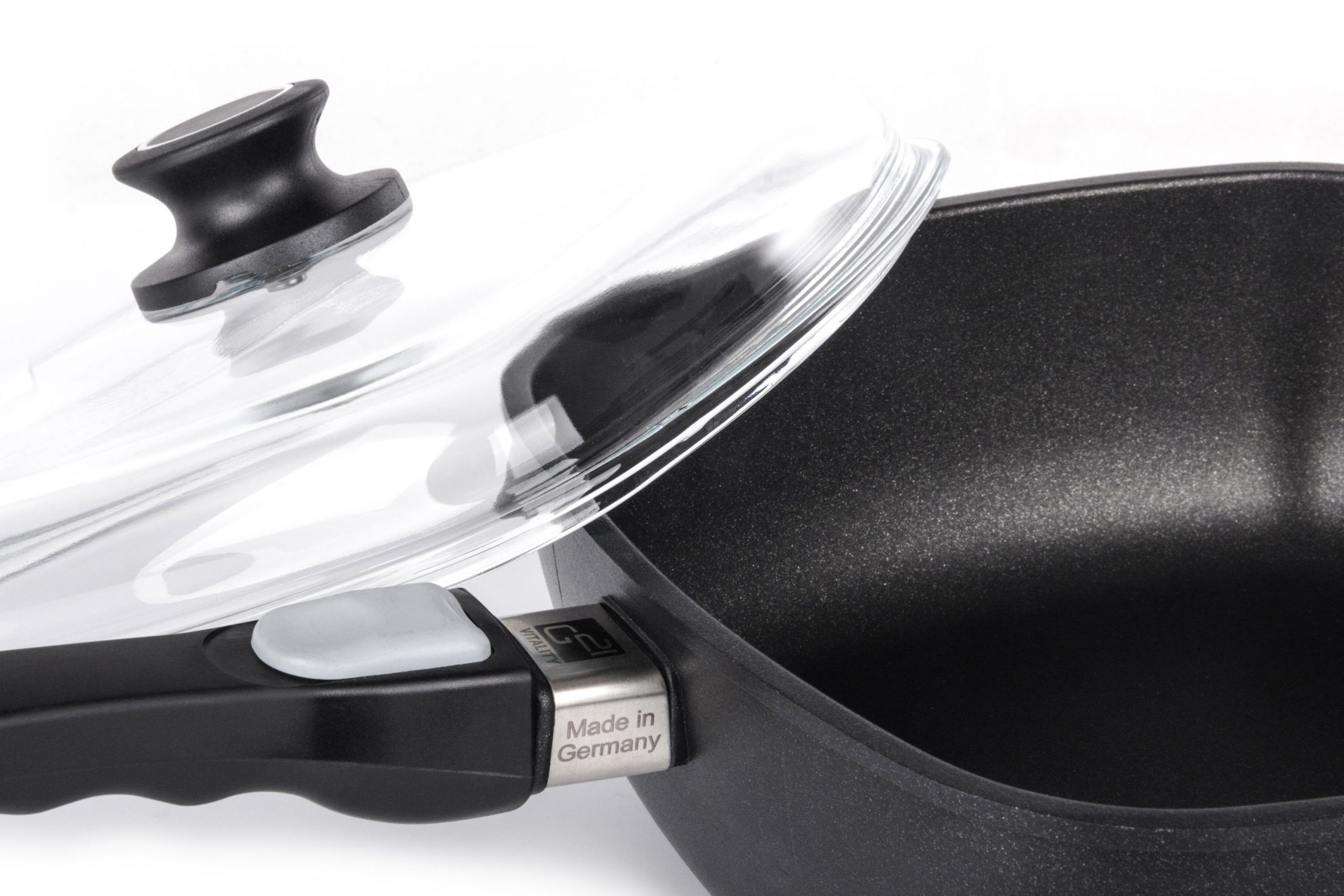 A G21 Cook serpenyő üveg fedele erősített és ellenálló üvegből készült, fogantyúval az egyszerű fogás érdekében anélkül, hogy megégetné magát. A serpenyő fedelén lévő foganytú alatt ötletes nyílás helyezkedik el a forró pára elvezetésére. A Cook serpenyő nagy előnye az ellenálló képessége – a fedelét, ugyanúgy mint a serpenyőt (fogantyú nélkül), használhatja sütőben és süthet és párolhat benne 240 fokig.