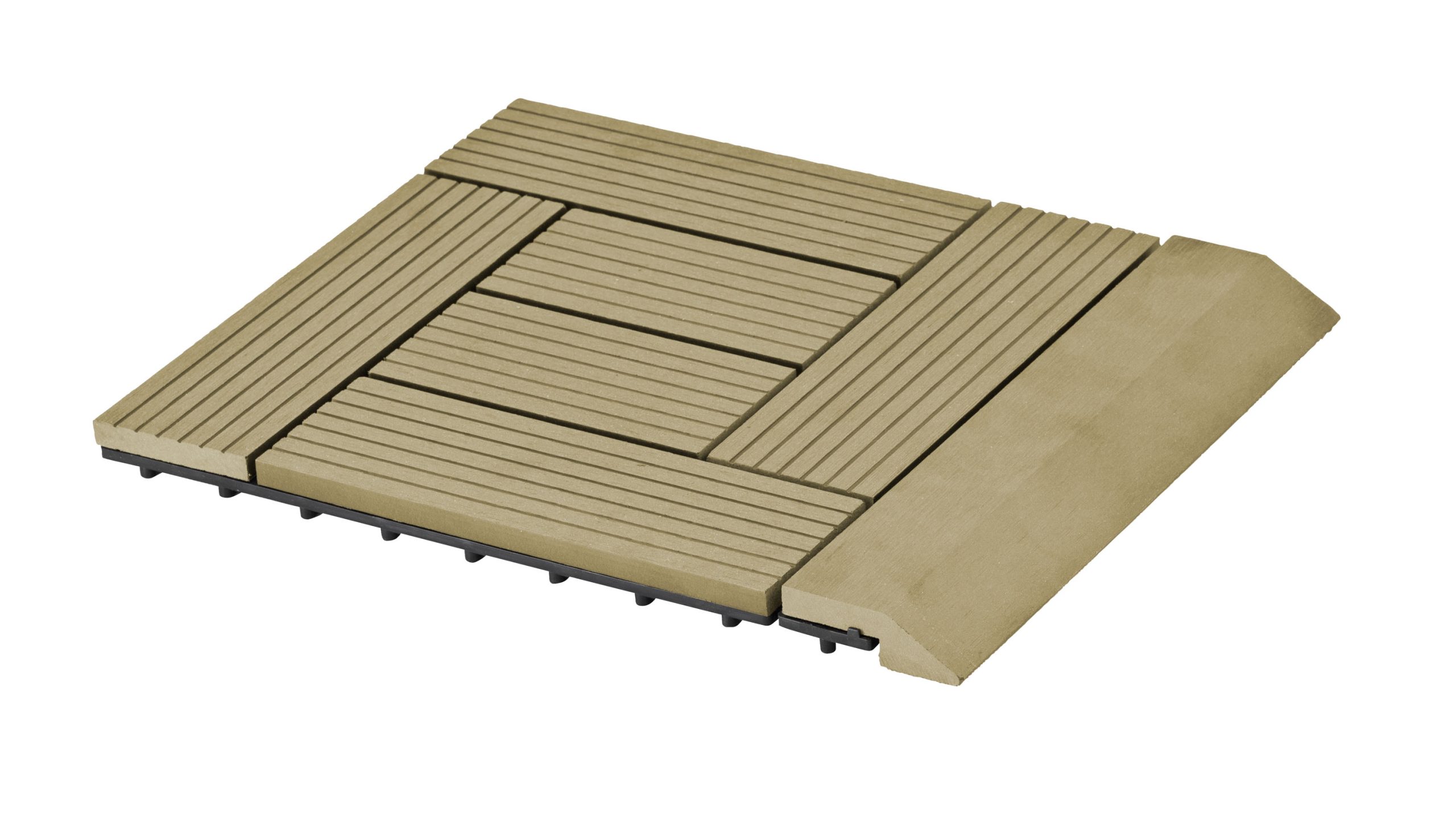 A G21 egyenes átvezető profil a WPC burkolócsempékhez esztétikus megjelenést és biztonságot nyújt a padló vagy a terasz használata során.