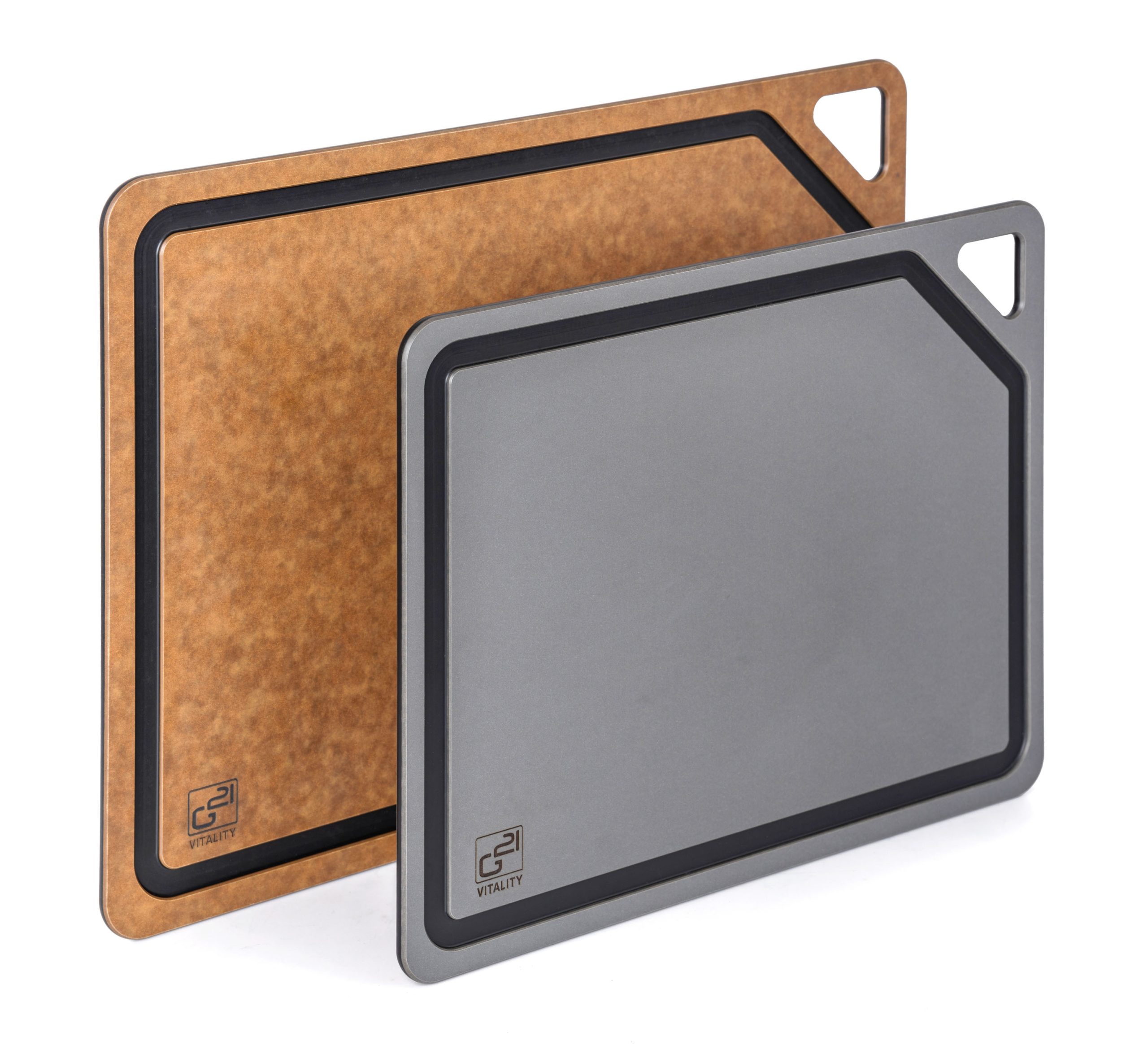 G21 EcoCut szeletelődeszka természetes cellulózból – 2 darabos készlet, barna/grafit színben