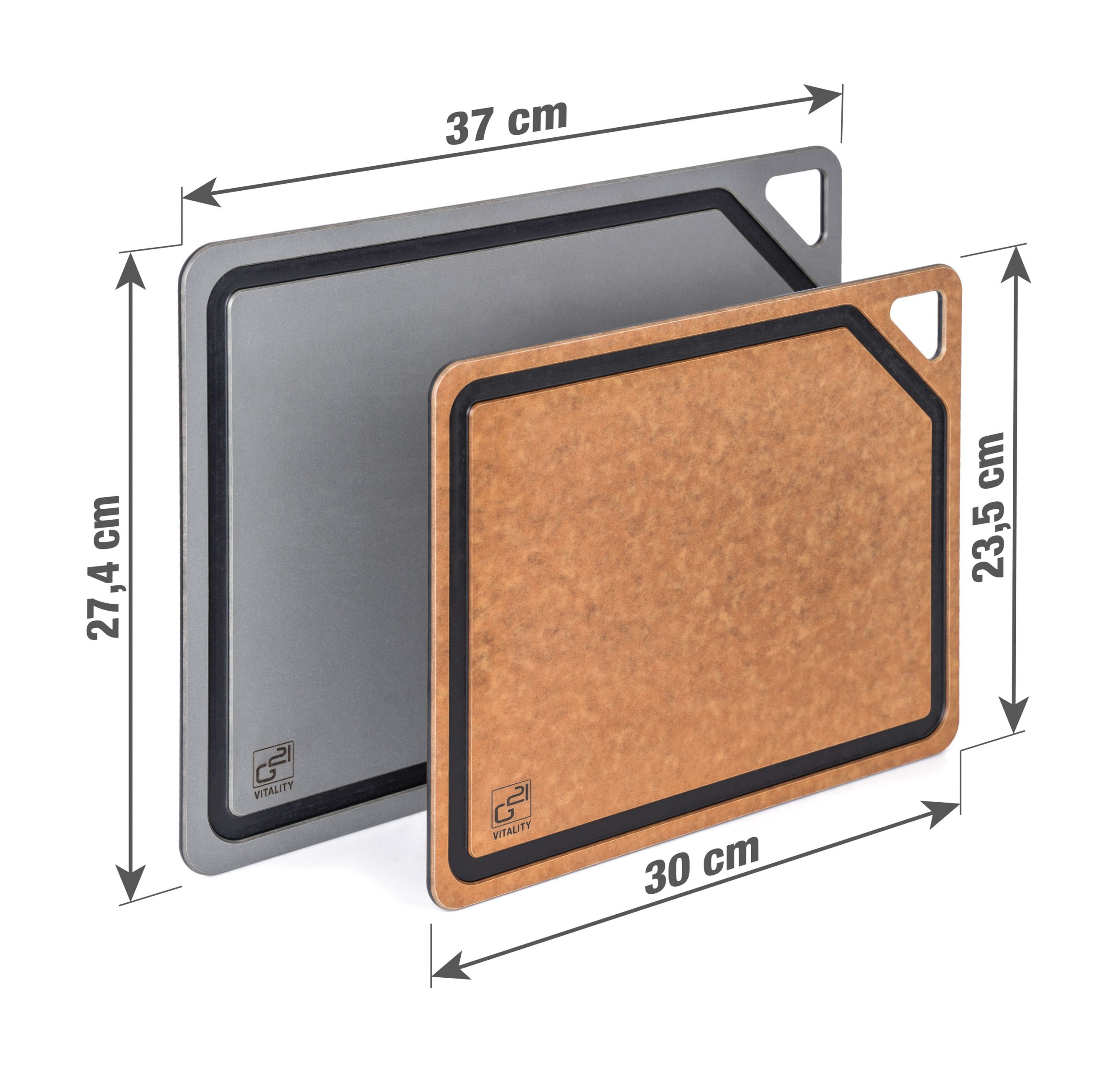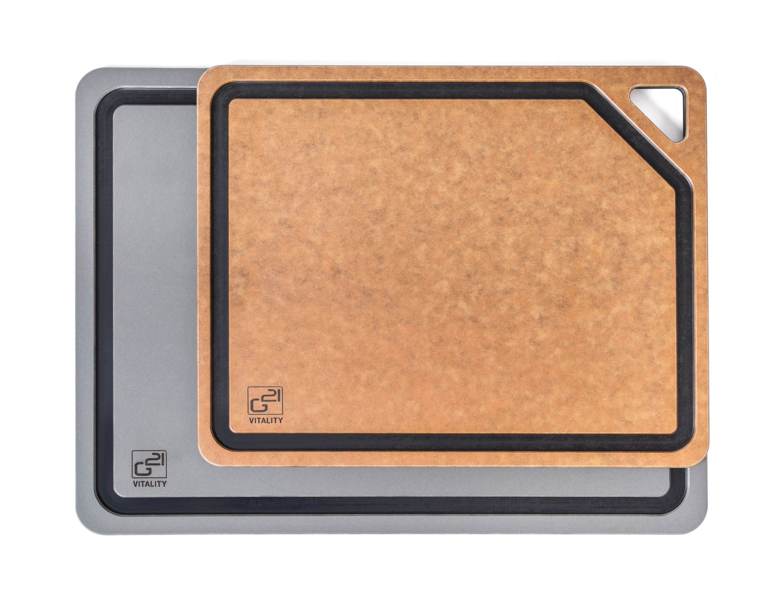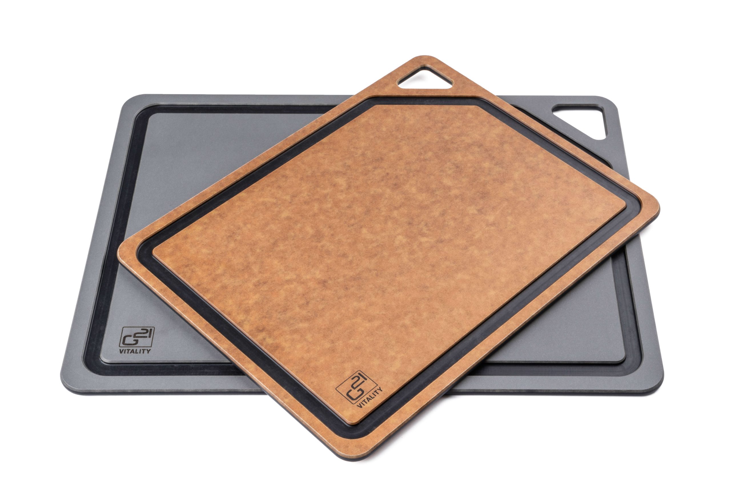 G21 EcoCut deszkák ötvözik a műanyag kinézetét és tulajdonságait a környezettudatos megoldással. A konyhai deszkák