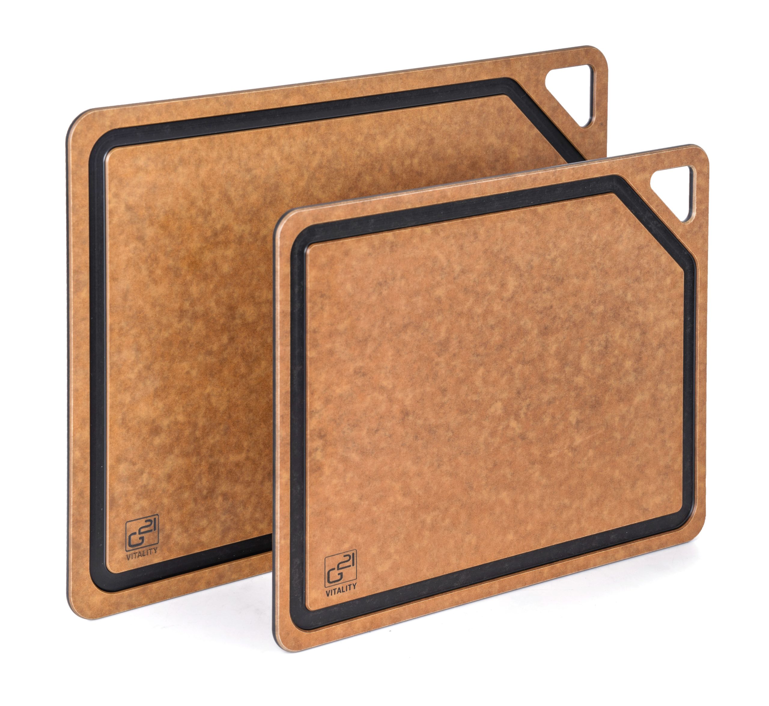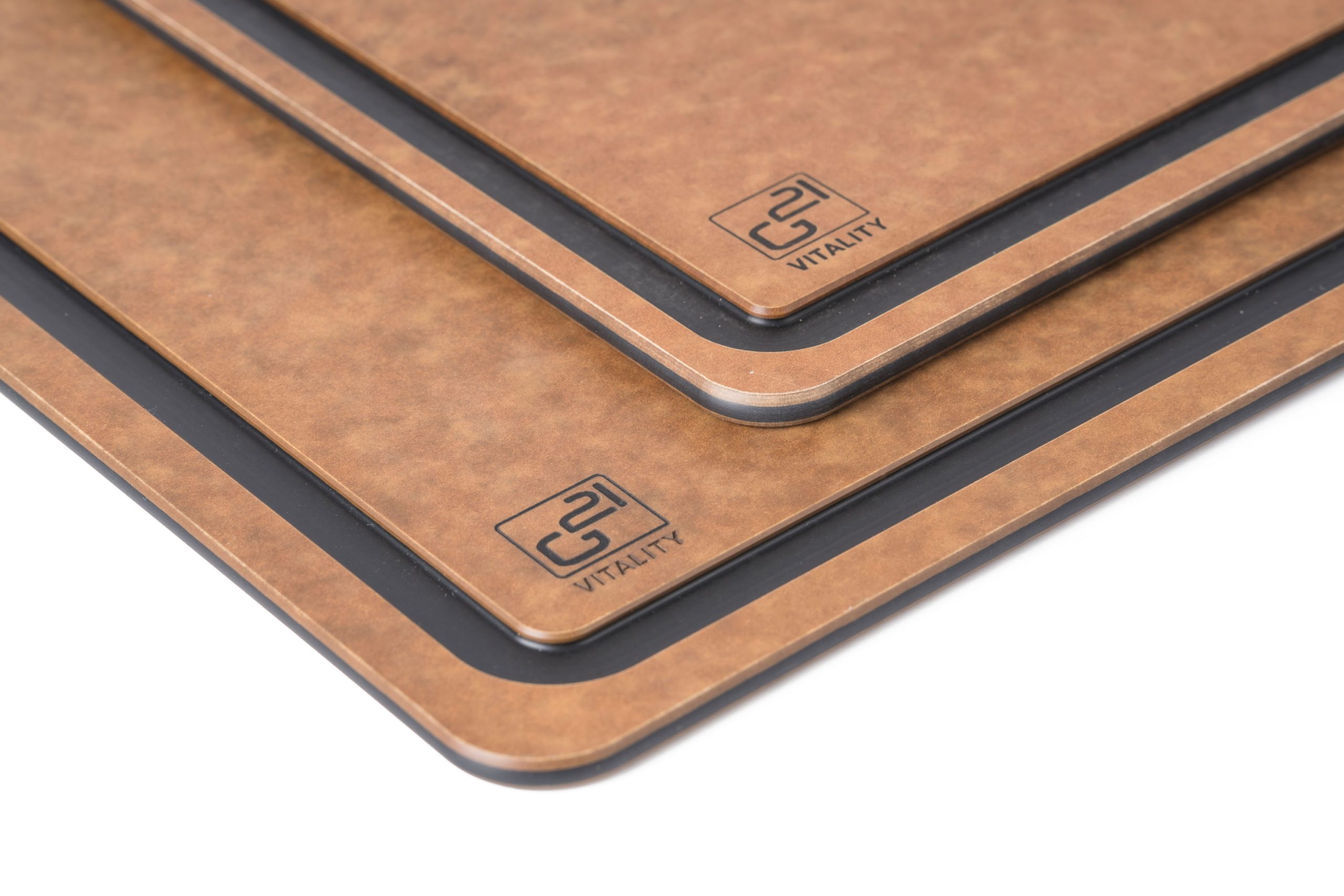 G21 EcoCut deszkák ötvözik a műanyag kinézetét és tulajdonságait a környezettudatos megoldással. A konyhai deszkák