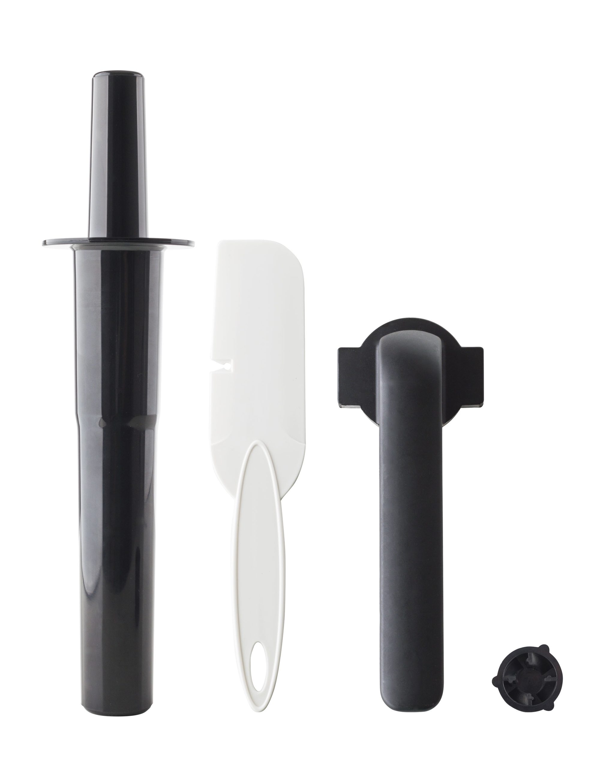 A turmixgép testén elhelyezett fogantyúnak köszönhetően tökéletesen illeszkedik a kezébe, így egyszerűen áthelyezhető. A nyersanyagok betöltéséreszolgáló nyílás olyan nagy, hogy azokat nem kell apró darabra vágni. Az egyszerű, de mégis kifinomult megoldással könnyedén kezelheti a turmixgépet mindössze két karral. A fordulatszámot egy tekerhető gombbal szabályozhatja. A tartály alakját és magasságát úgy optimalizáltuk, hogy az összetevők tökéletesen elegyedhessenek. A betolókar segítségével könnyen mozgathatja a már a tartályban lévő alapanyagokat.