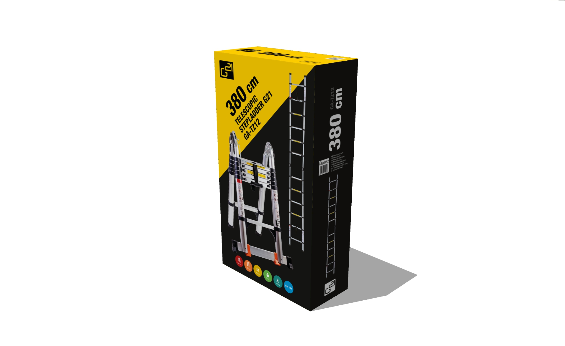 A G21 GA-TZ12-3,8M teleszkópos létra súlya 15 kg, maximális hossza 3,8 m és összecsukott állapotban 0,9 m magas. Szakemberek számára volt tervezve és elegendően merev és ellenálló a szerkezete a duralprofil rendszernek köszönhetően. Teherbírása 150 kg.