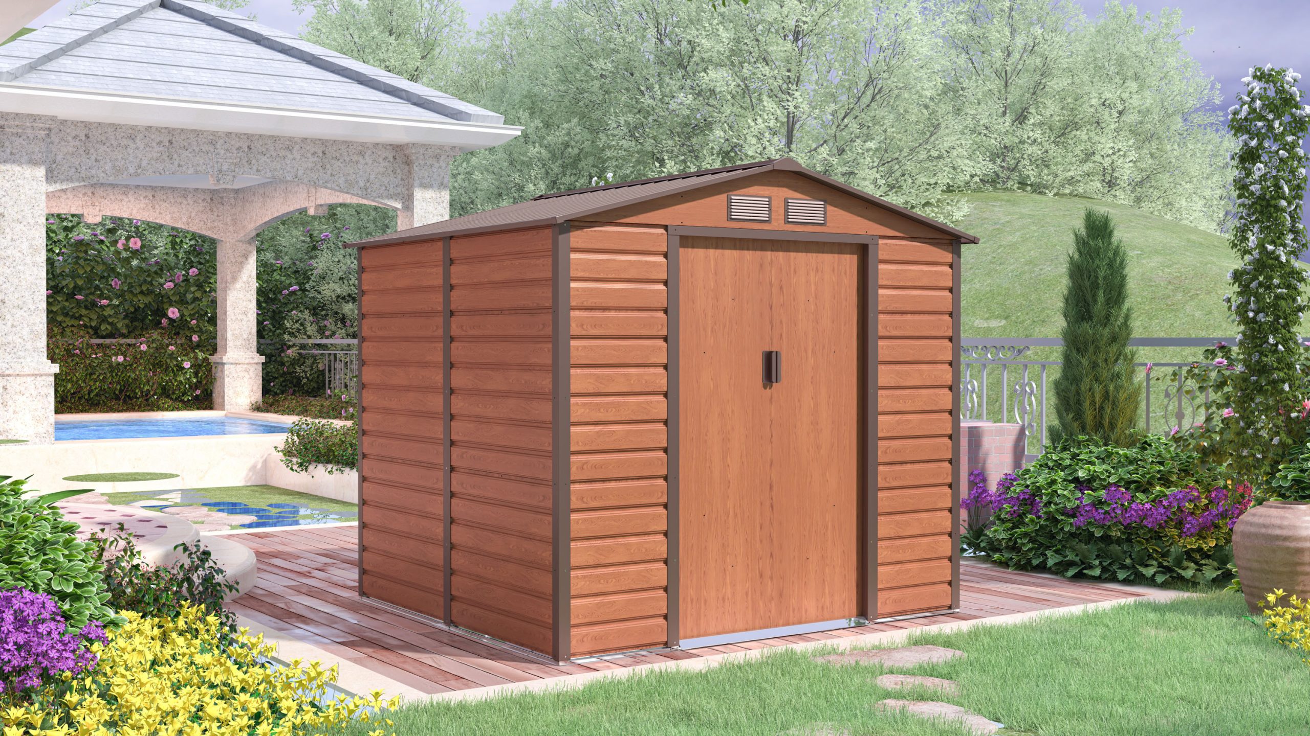 A barna G21 GAH 407 kerti tároló minőségi profilozott 0,25 – 0,30 mm vastagságú acéllemezből készül. Horganyzott, porszórással bevont. A szerkezete is acél és horganyzott. Ideális a kerti szerszámok egész évi tárolására.