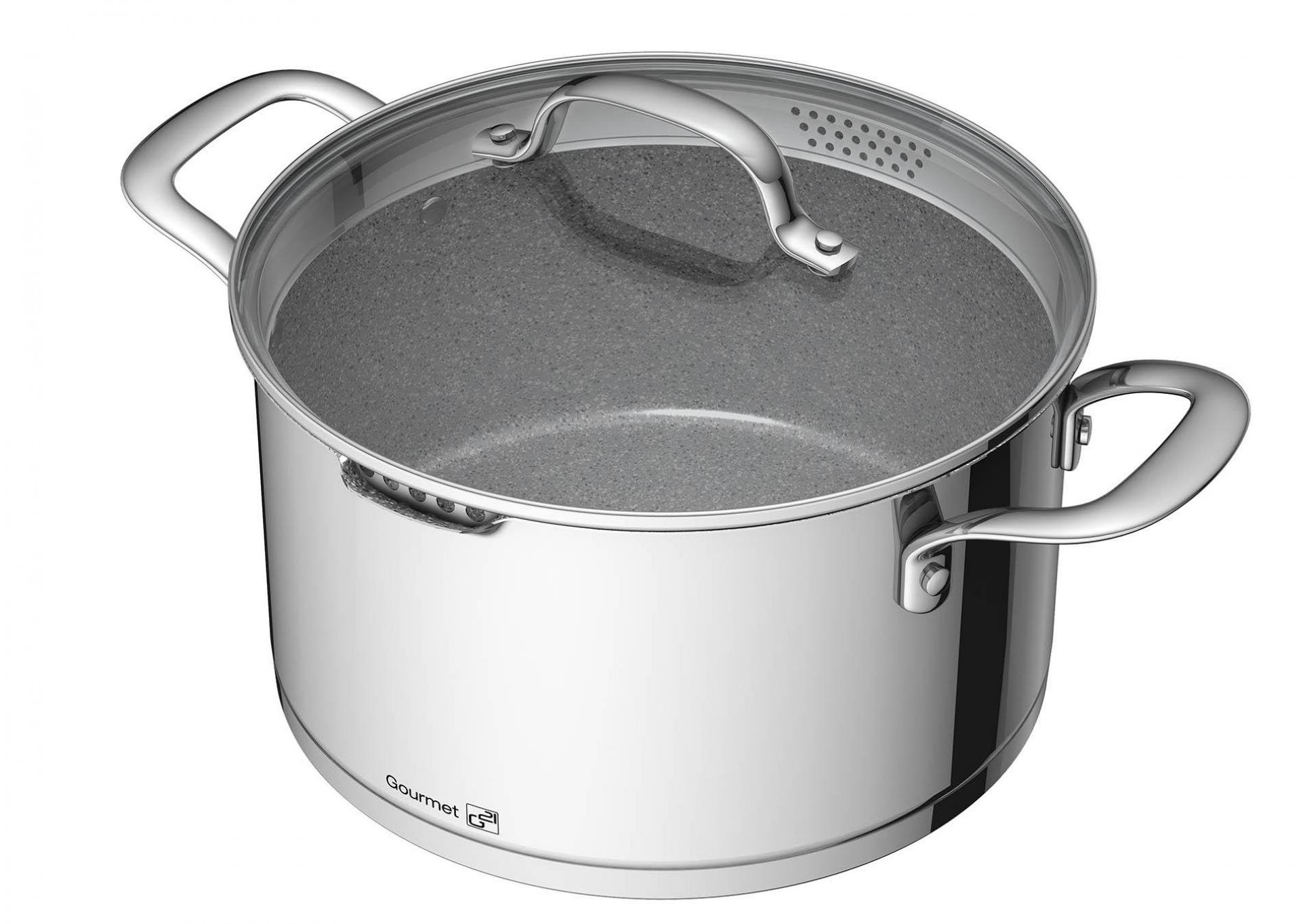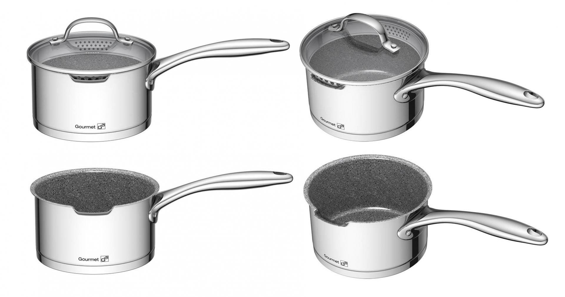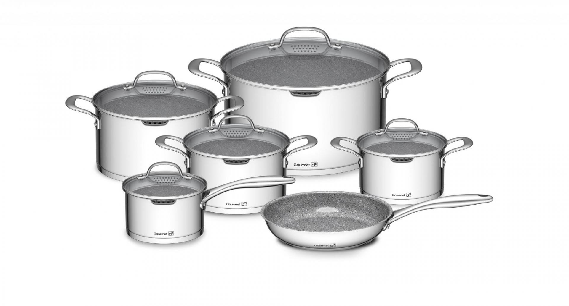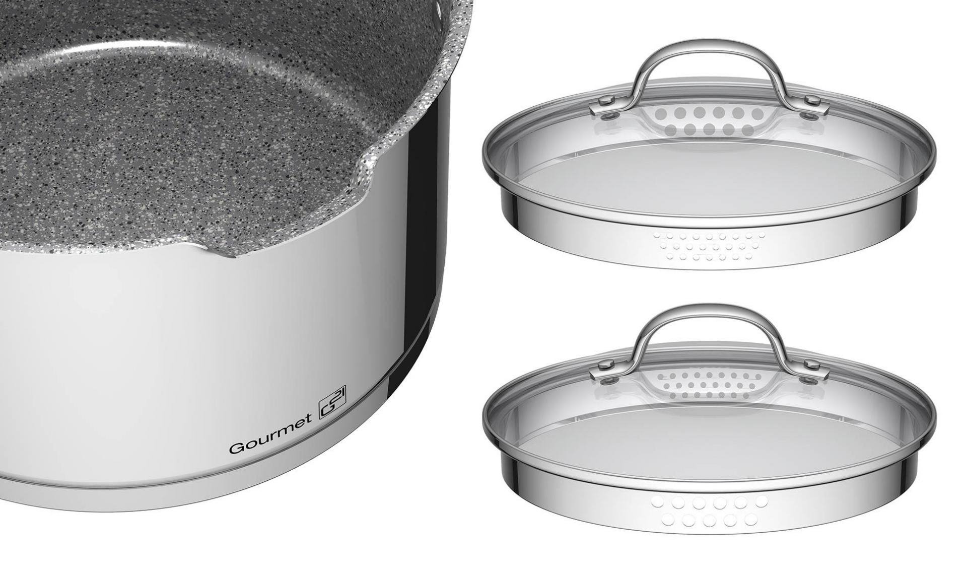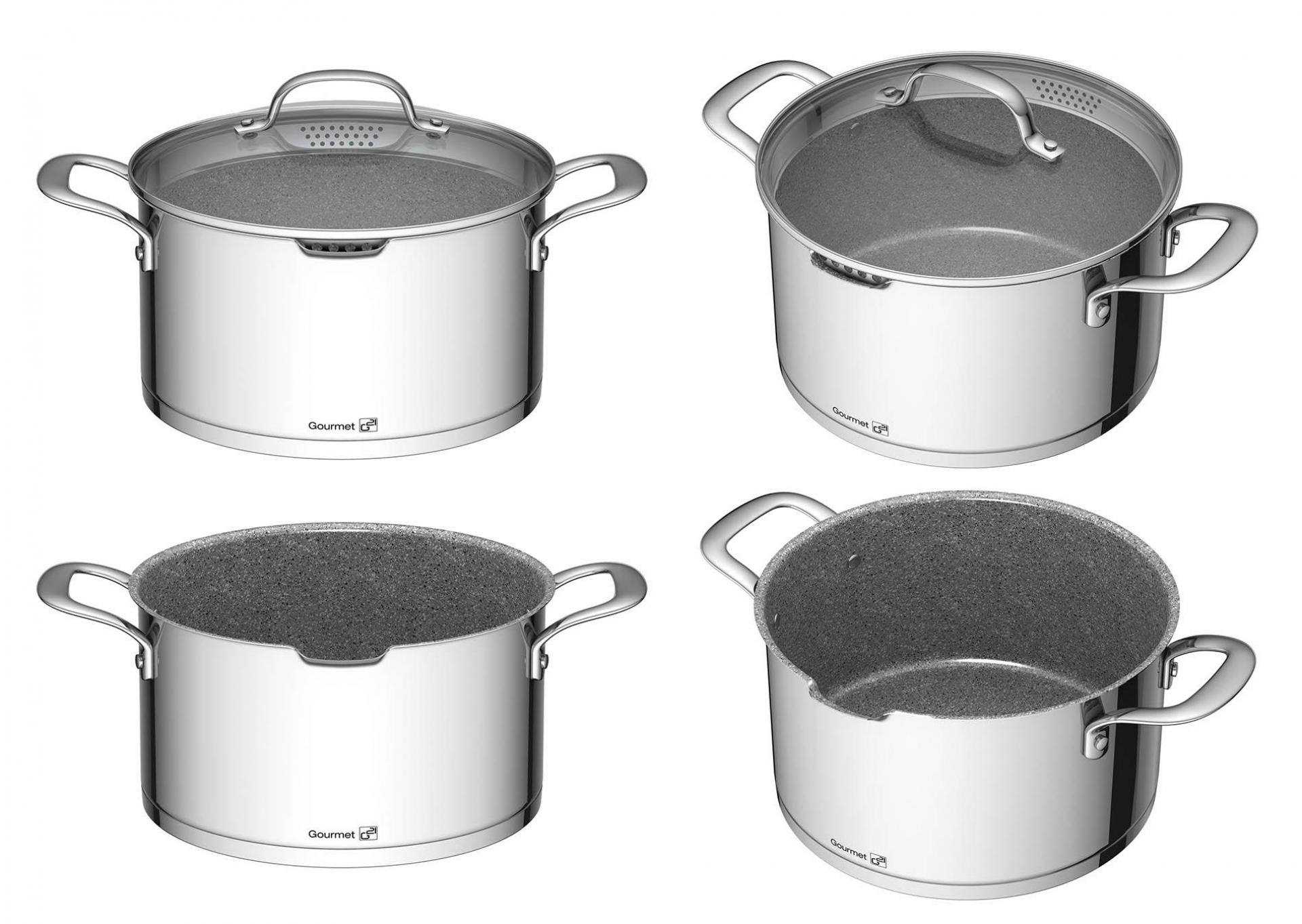 G21 Gourmet Miracle edénykészlet különleges 18/10 CrNis élelmiszeripari rozsdamentes acélból GREBLON® C3+ belső tapadásmentes felülettel magas ellenállással. Minden edény és serpenyő erős szendvics aljjal rendelkezik a tökéletes egyenletes hőelosztásért és megfelelnek minden típusú tűzhelyre. Az egyedi tulajdonságaiknak és a tökéletes kialakításuknak köszönhetően a greblon edények időtlen dizájnnal nagyon népszerűek és hosszú évekig kitartanak.