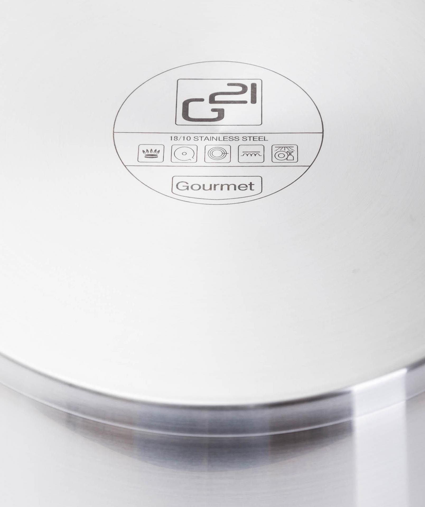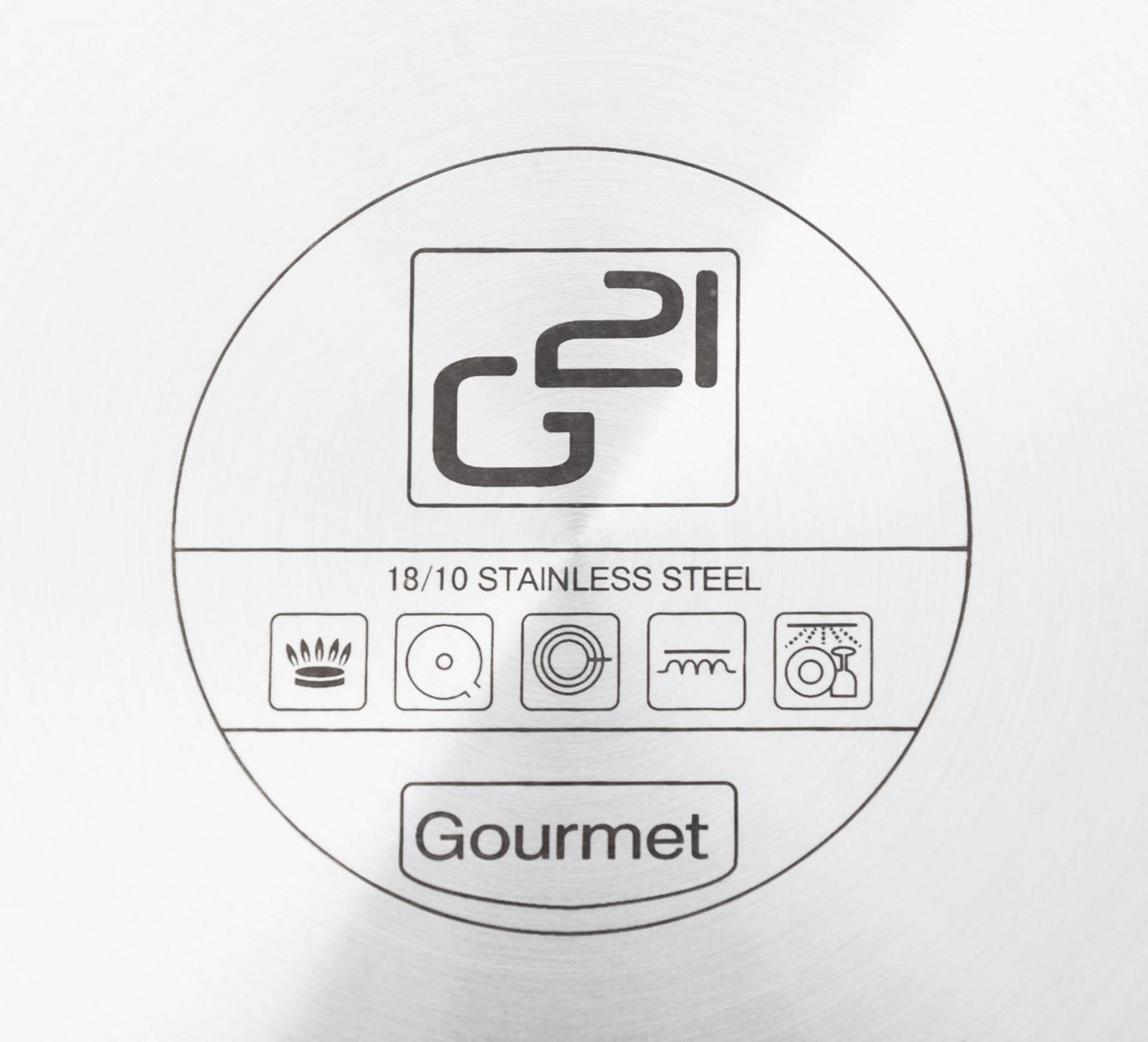 A G21 Gourmet Miracle rozsdamentes acélból készült serpenyő kiváló tulajdonsága, hogy lehetetlen leégetni a benne készült ételt. Az erős falak és a réteges szendvics alj levegő zsebek nélkül tökéletesen osszák el a hőt és megakadályozzák az ételek odaégését.