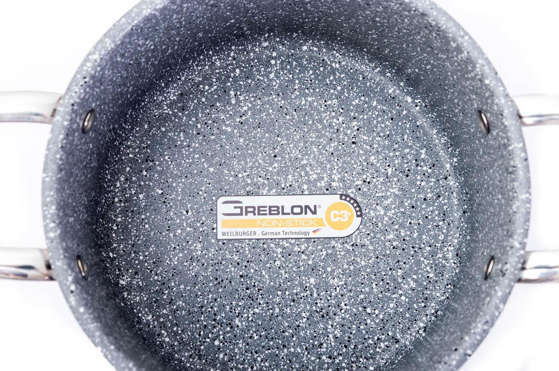 - Anyag: élelmiszeripari acél 18/10 CrNi Greblon C3+ marble tapadásmentes felülettel 3 réteges bevonattal