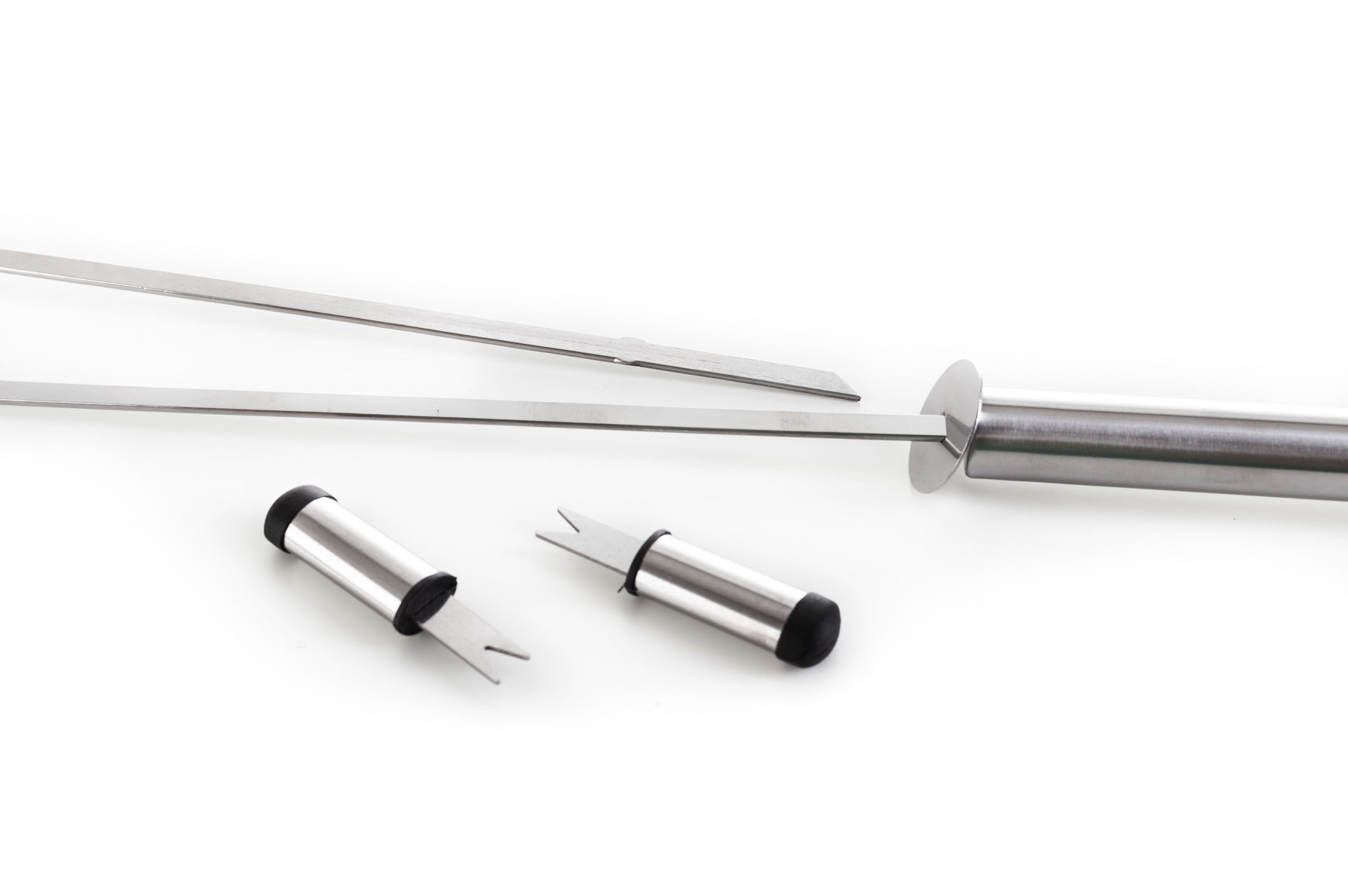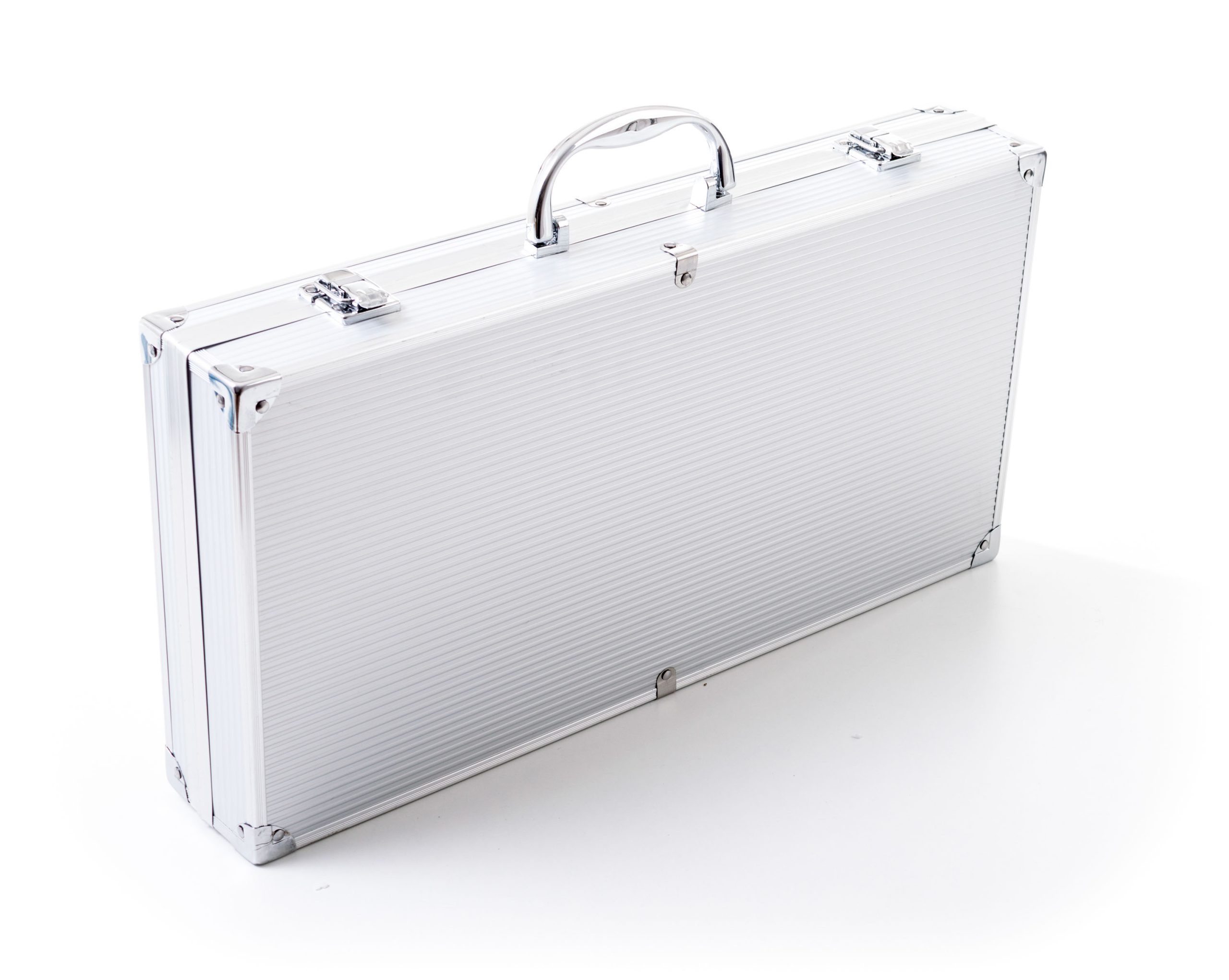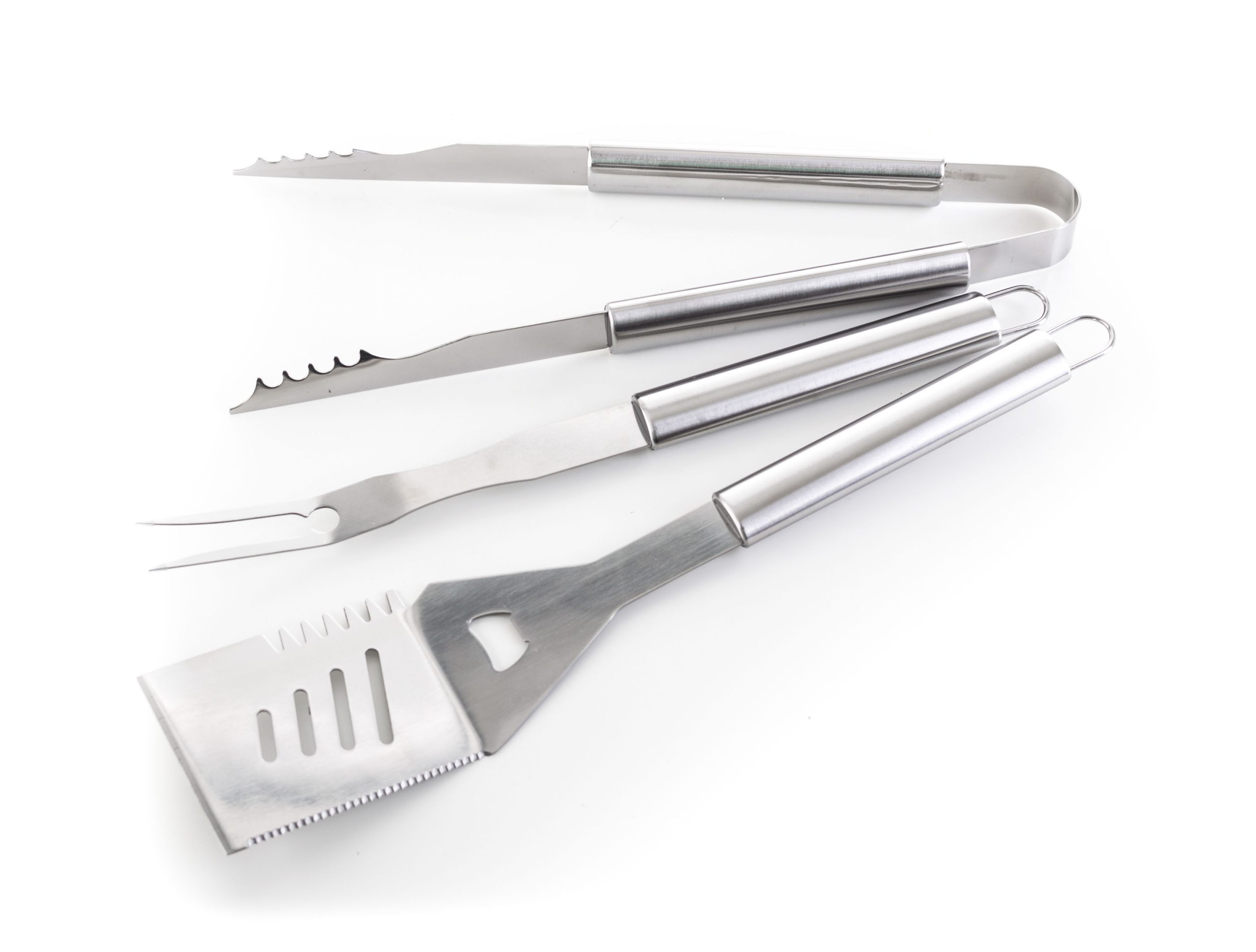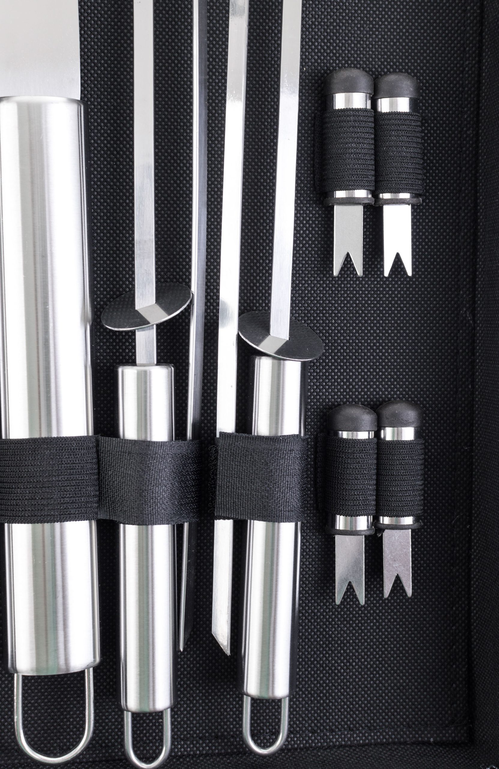 A készlet tartalmaz minden eszközt a gond nélküli grillezéshez. A készlet része egy húsforgató, villa, csipesz, kenőecset, tisztító kefe, pálcikák kukoricára és nyárstűk. Az eszközök 40 cm-es hossza biztosítja, hogy grillezés közben a lángok nem égetik Önt meg és nem fog Önre fröcsögni az olaj. Az egyszerű áthelyezés és tárolás érdekében az eszközök egy praktikus alumínium bőröndbe van elhelyezve.