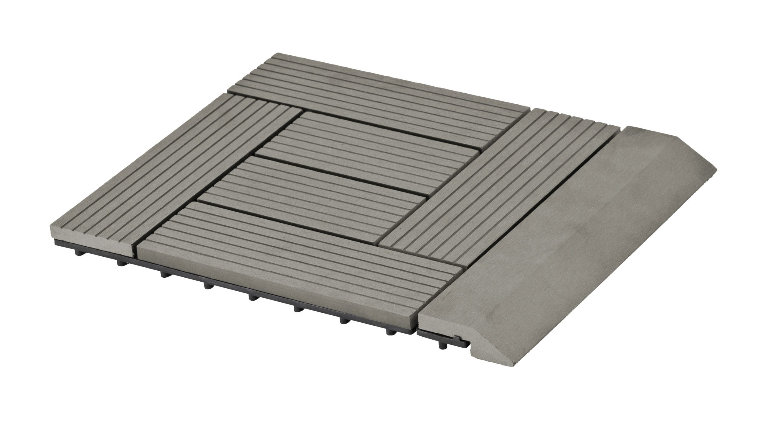 A G21 egyenes átvezető profil a WPC burkolócsempékhez esztétikus megjelenést és biztonságot nyújt a padló vagy a terasz használata során.
