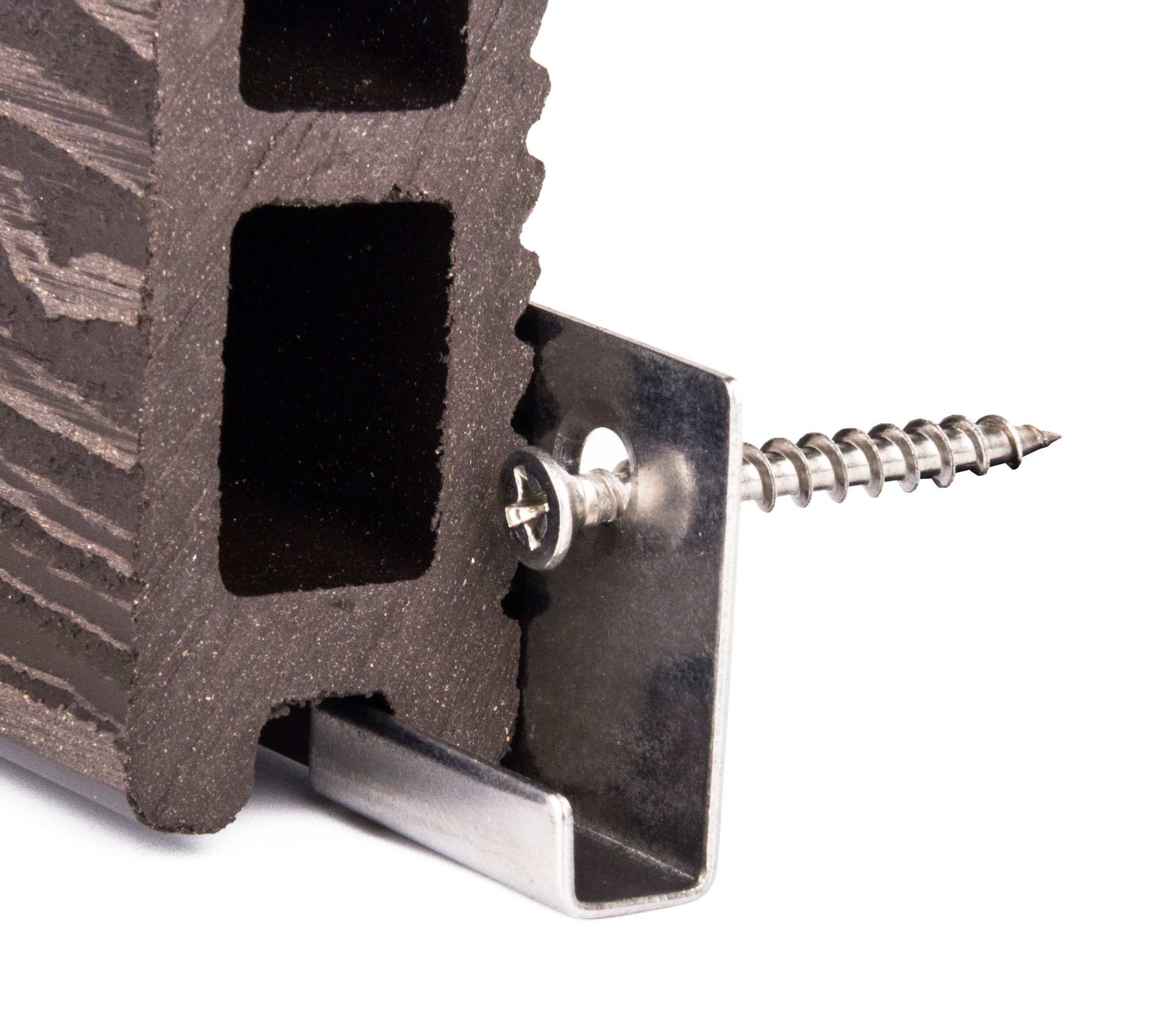 G21 padlóburkoló rendszer burkolólap rögzítőcsavar az első és utolsó WPC burkolólap soron használatos. Minden pontban használandó, ahol a tartóhasáb keresztezi a burkolólapot.