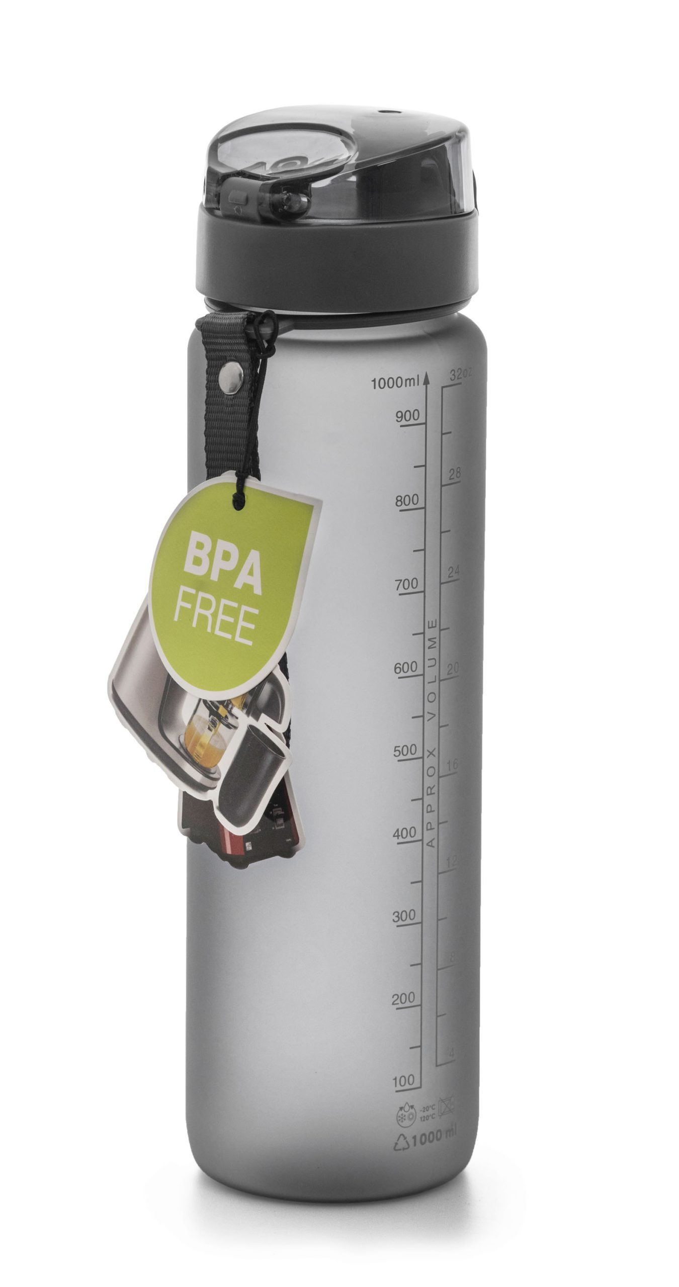 Az ivópalackhoz tartozéka, egy 15 cm hosszú pánt is. Nem kell palackot a kezében tartania, ha sétálni, korcsolyázni vagy biciklizni indul. A pánt könnyedén a hátizsákra illeszthető, így nem jelent akadályt sportolás közben.
