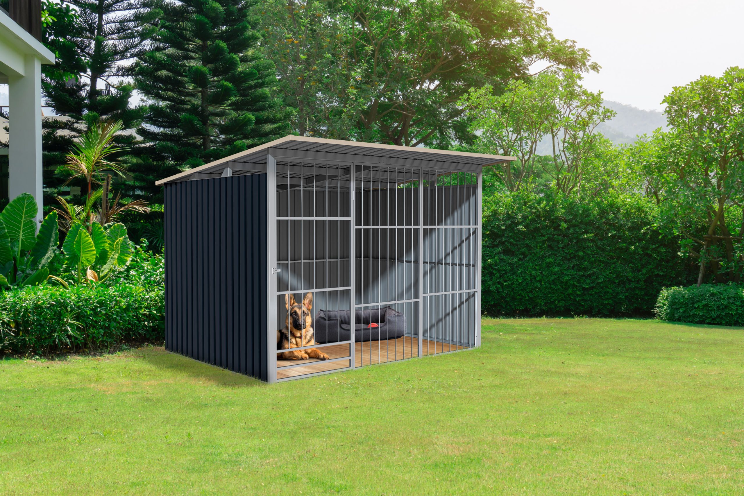 A G21 kutyaketrec nagysága 260 x 220 cm,tágas és erős szerkezettel, három szilárd fallal és ejtett tetővel. AG21 kutyaketrec ajtaja nagy a könnyű hozzáférés miatt és egy reteszbiztosítja zárhatóságot.