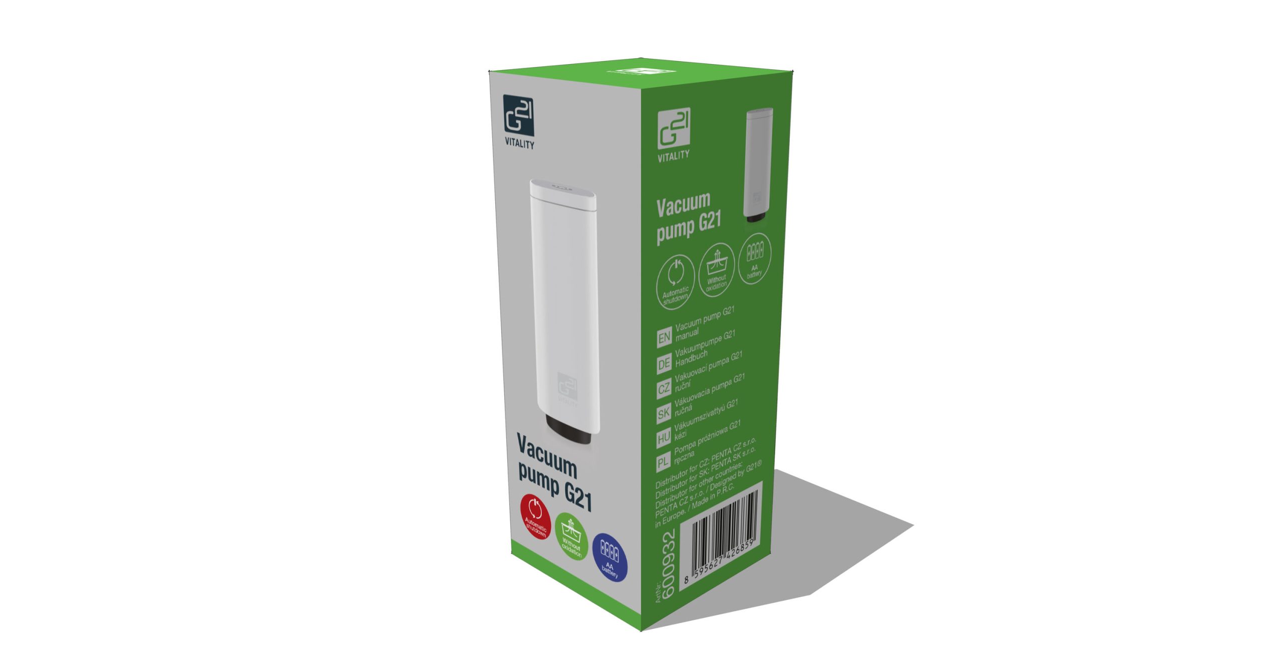 A G21 vákuumszivattyú kezelése nagyon egyszerű. A levegőszívást a kompakt vákuumszivattyú tetején található gomb megnyomásával indíthatja el. A vákumozás automatikusan megtörténik, és miután a levegőt teljesen kiszívta, a vákuumszivattyú magától kikapcsol. Ez növeli a biztonságot és energiát takarít meg.