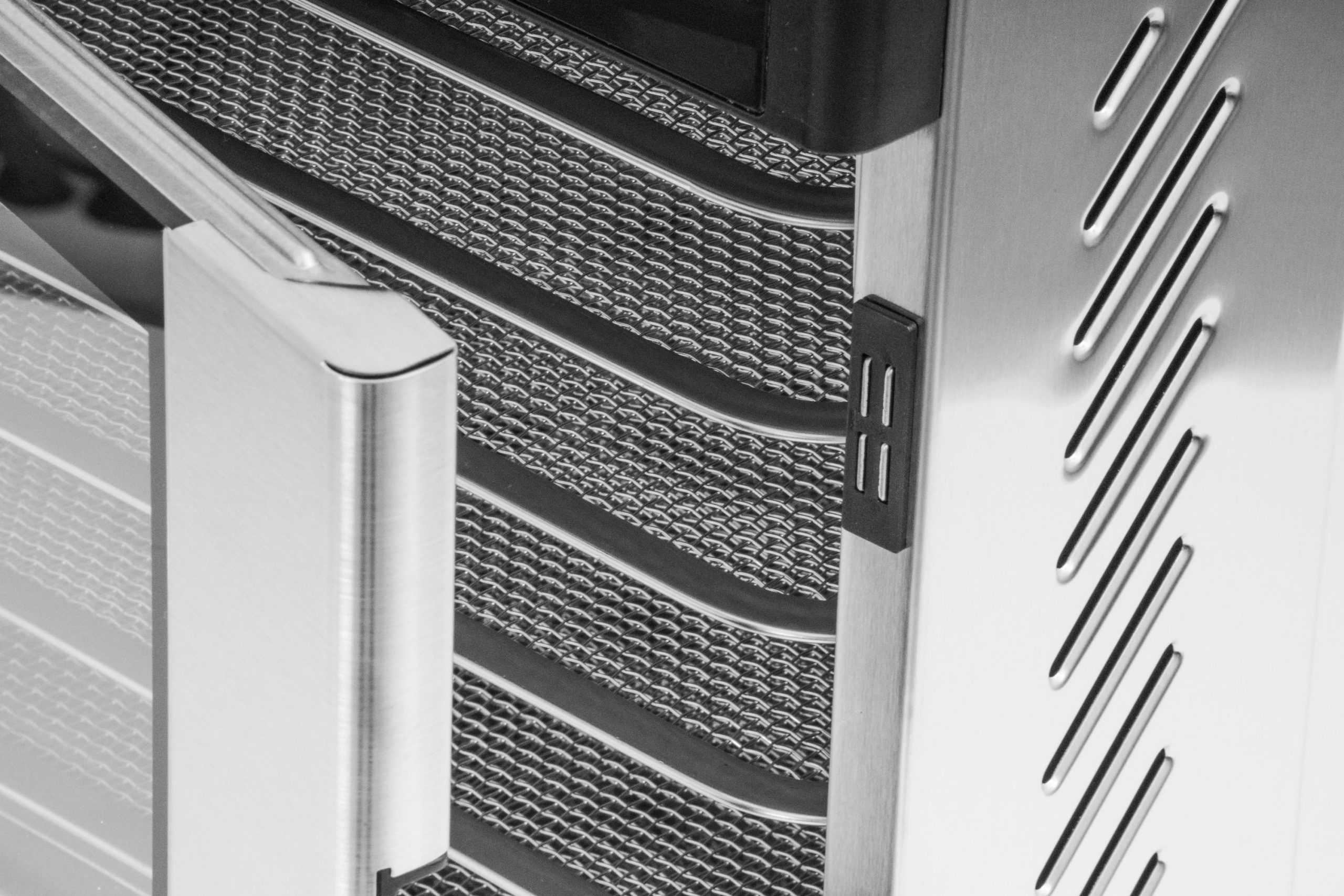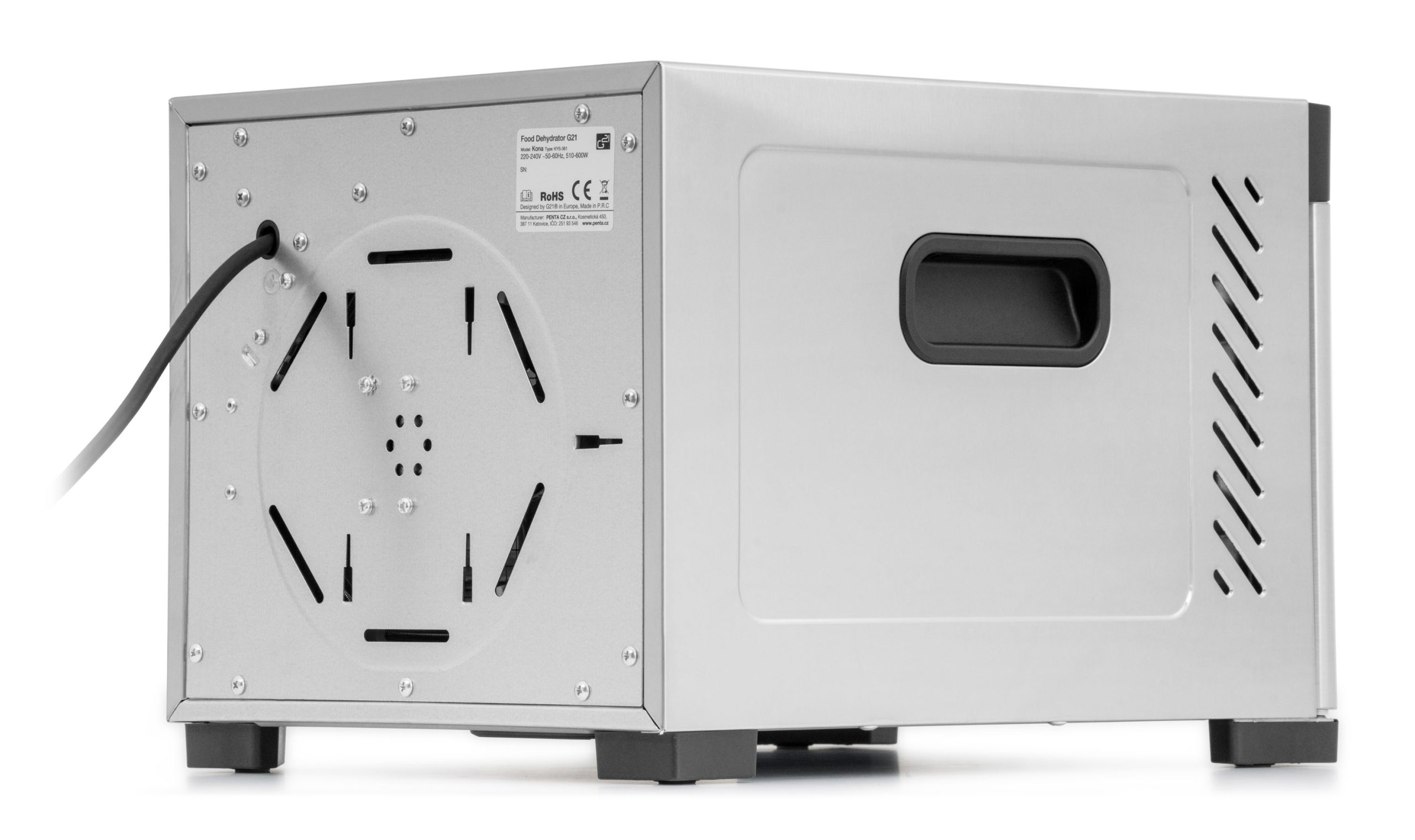 Minden élelmiszerrel érintkező alkatrészt rozsdamentes acélból készítettünk, valamint a leggyakrabban használt szárítólapot vagy külső burkolatot. Így egy praktikus háztartási gép olyan dizájn-kiegészítővé válik, amely minden konyhatípushoz jól passzol. Ennek köszönhetően a szárítógép gondozása is egyszerű és gyors.