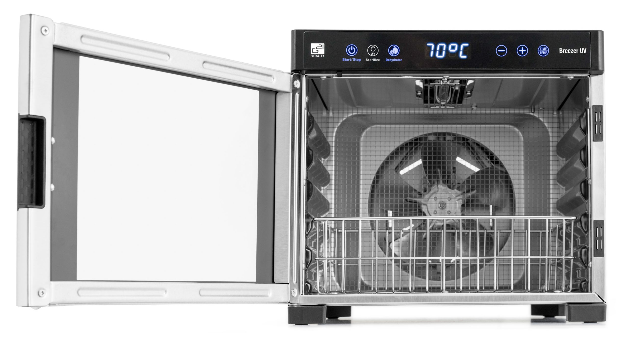 A belső rozsdamentes kosár lehetővé teszi a szárító maximális kihasználását. A kosárba UV fénnyel fertőtlenítendő tárgyak rakhatók, poharak tárolására is használható, ha szárítógépben házi joghurtot készítünk, zsemlemorzsát szárítunk stb.