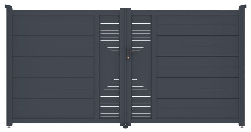 G21 Marion 350×173 cm kétszárnyú kapu, antracit – 63900707     A bejárati kapu kulcsfontosságú része az ingatlan vagy telek kerítésének. A 173 cm magas Marion alumínium kapu a porbevonatnak köszönhetően még hosszabb élettartamú, strapabíró … Bővebben: G21 Marion 350×173 cm kétszárnyú kapu, antracit – 63900707