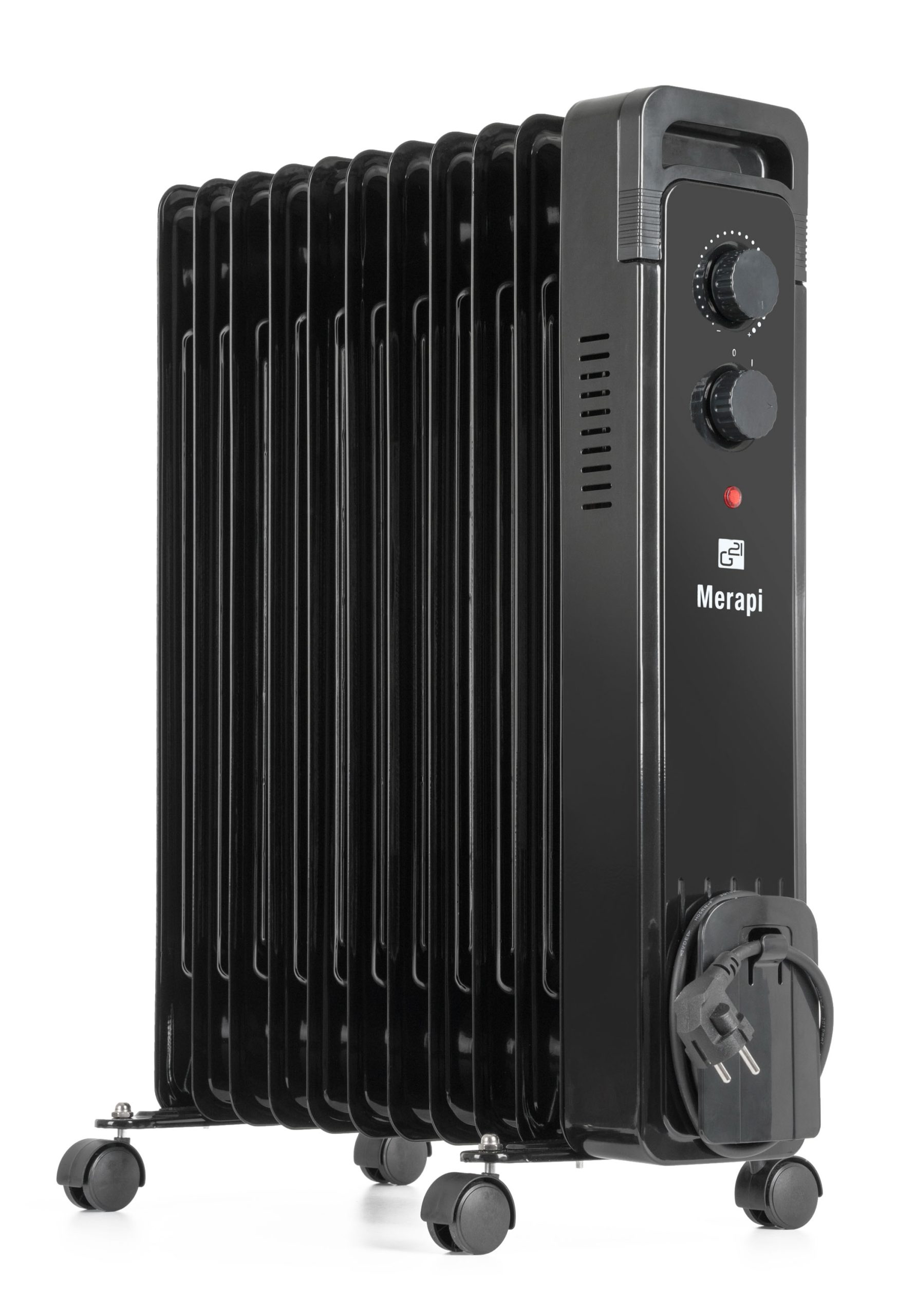 A G21 Merapi elektromos olajradiátor kifűti a nyaraló helyiségeit, egy hálószobát alváshoz, hűvös helyiségeket egy lakásban, egy műhelyt vagy garázst. Az olajradiátorok előnye a hosszabb fűtés, mert a felhalmozott hő tovább sugárzik belőle, mint a hagyományos elektromos fűtőtestekből vagy radiátorokból.