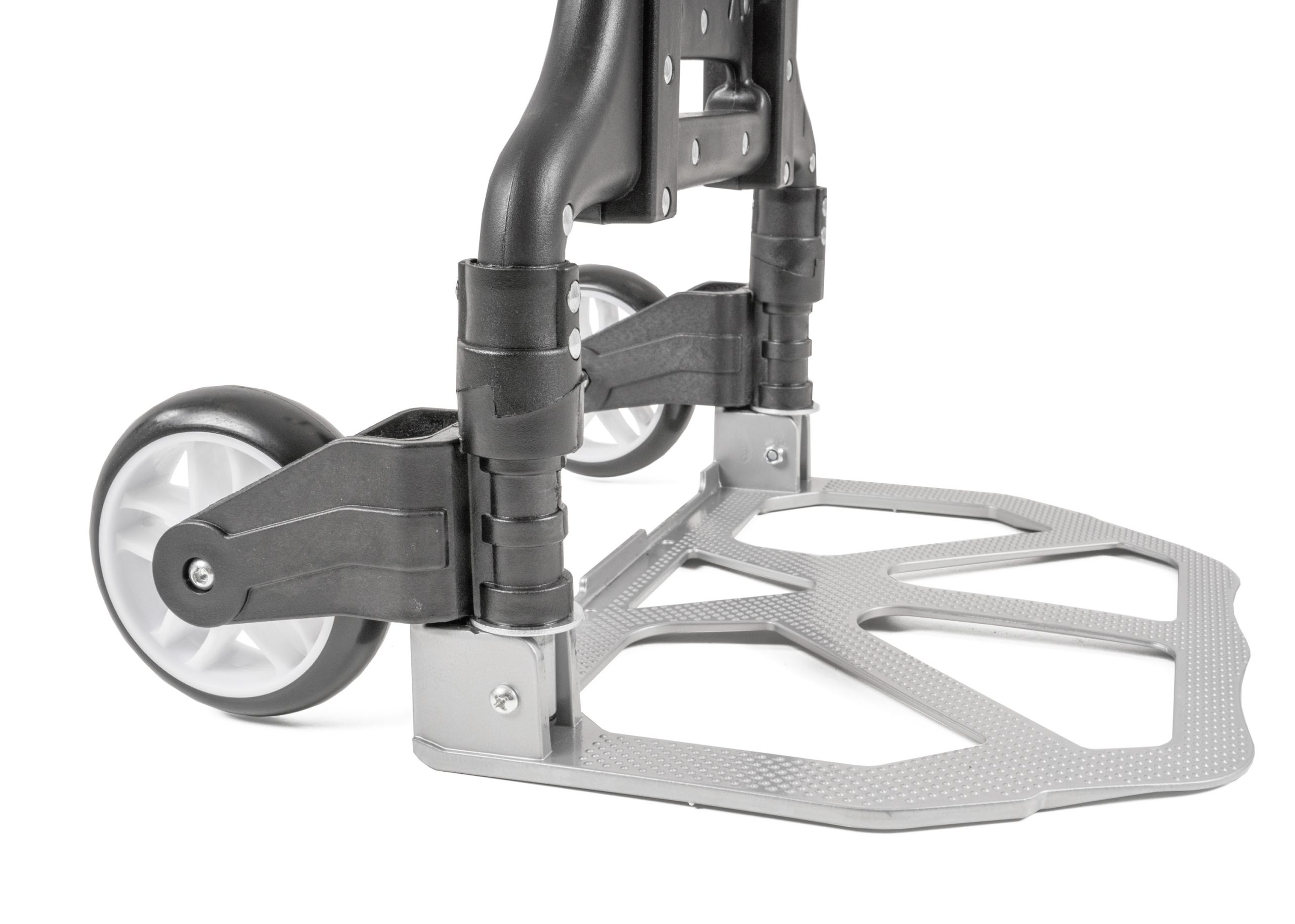 A G21 teleszkópos összecsukható molnárkocsi praktikus felszerelésként szolgál otthonra, műhelybe vagy raktárba. Megkönnyíti a nehéz csomagok, nagybevásárlás, küldemények vagy poggyász szállítását. Könnyű alumínium konstrukciójának, teleszkópos fogantyújának és lehajtható rakodófelületének köszönhetően egyszerűen kezelhető. Kompakt méreteinek köszönhetően autó csomagtartójába is elfér.