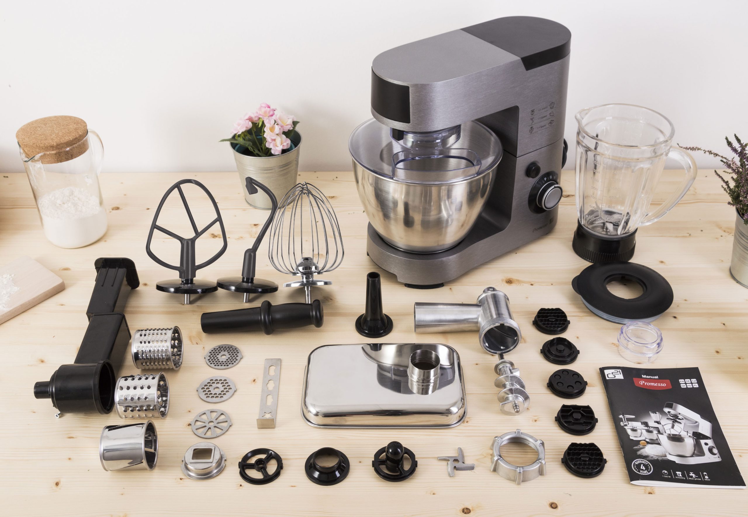 Egy mindenkiért – a fém fogaskerekes G21 Promesso teljesen fém konyhai robotgép leírása pontos. Az 1500 W teljesítménnyel, a hihetetlenül gazdag tartozékválasztékkal és a 4 év minőségi garanciával megbirkózik a főzés előkészítésével kapcsolatos minden munkával. , sütés és keverés.