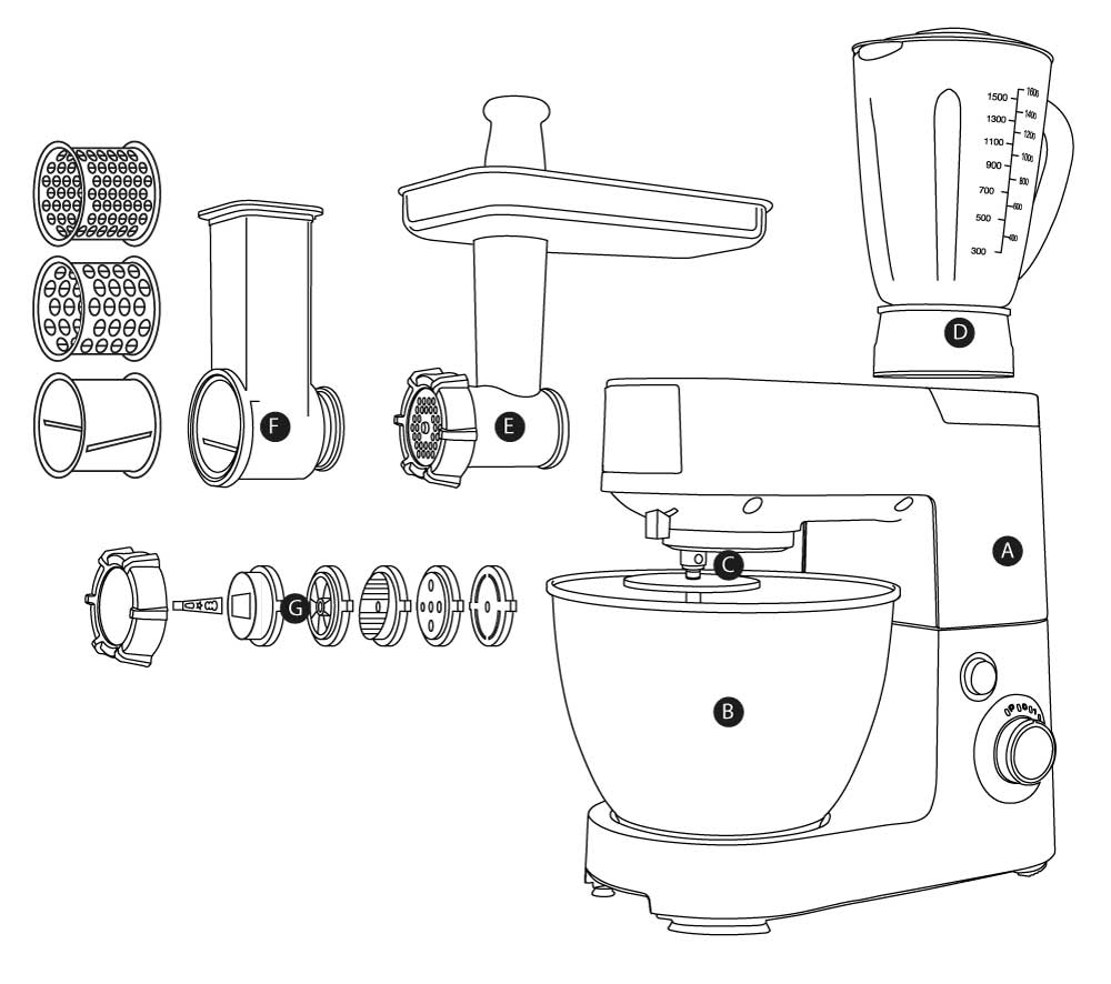 Kever, reszel, dagaszt, darál, habver, kever… A speciális sütitartozéknak köszönhetően mindenféle ünnepre és ünnepre formázza a sütiket. Húst darál, tésztát készít, kelesztéshez rugalmas és merevebb tésztát dagaszt. Tökéletesen simára keveri a turmixokat, és a diótól a kemény gyökérzöldségig mindent lereszel.