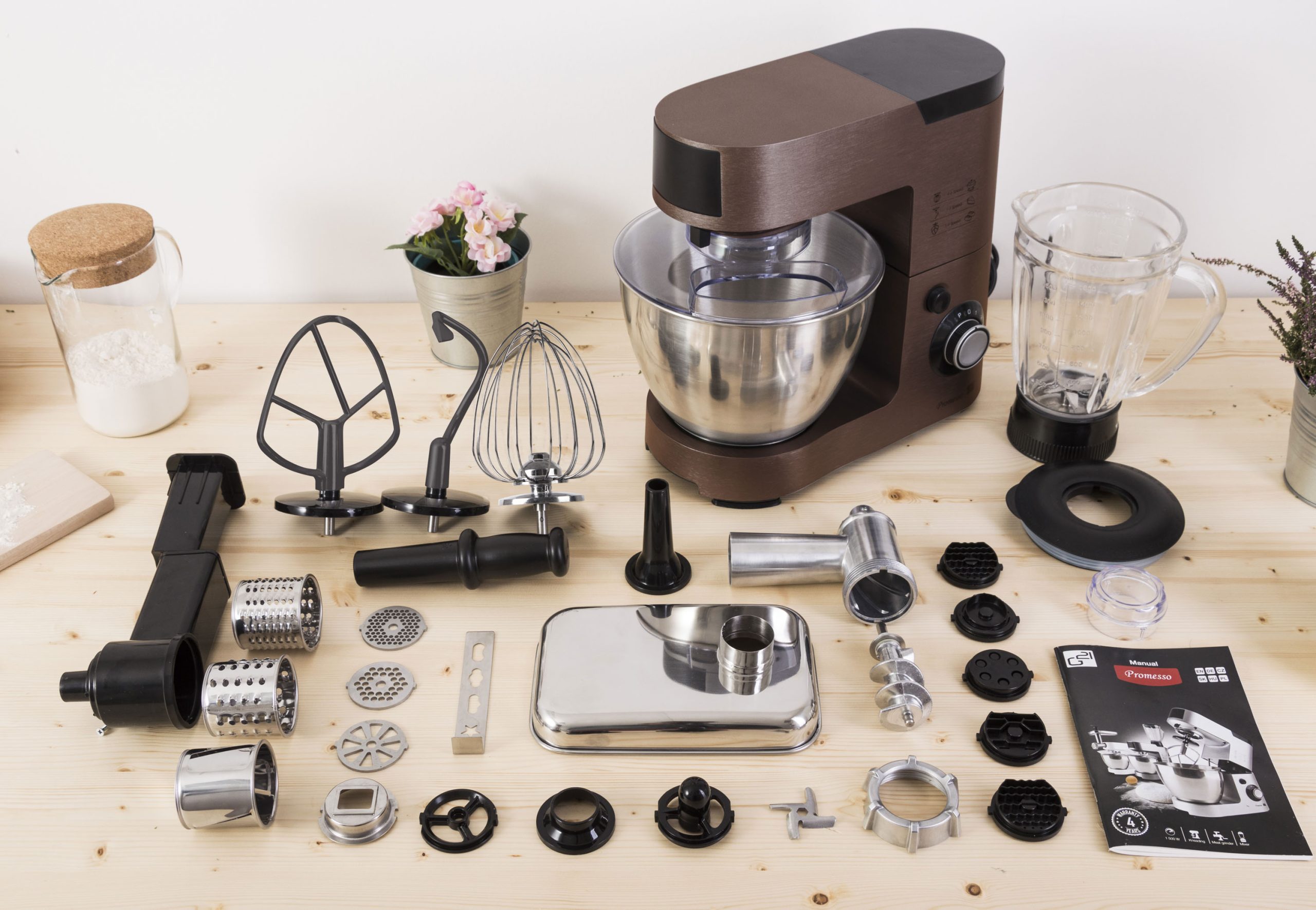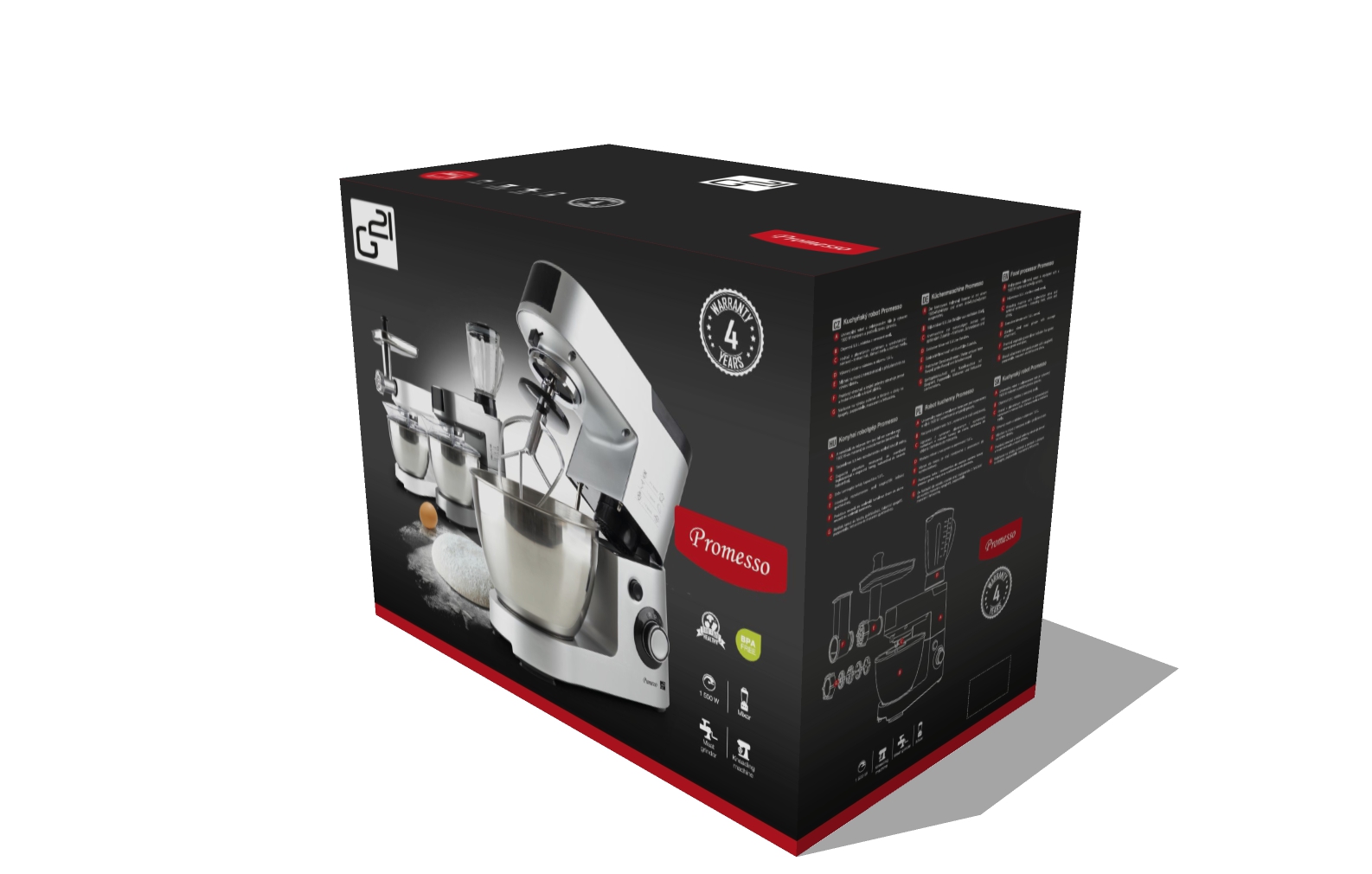 Egy mindenkiért – a fém fogaskerekes G21 Promesso teljesen fém konyhai robotgép leírása pontos. Az 1500 W teljesítménnyel, a hihetetlenül gazdag tartozékválasztékkal és a 4 év minőségi garanciával megbirkózik a főzés előkészítésével kapcsolatos minden munkával. , sütés és keverés.