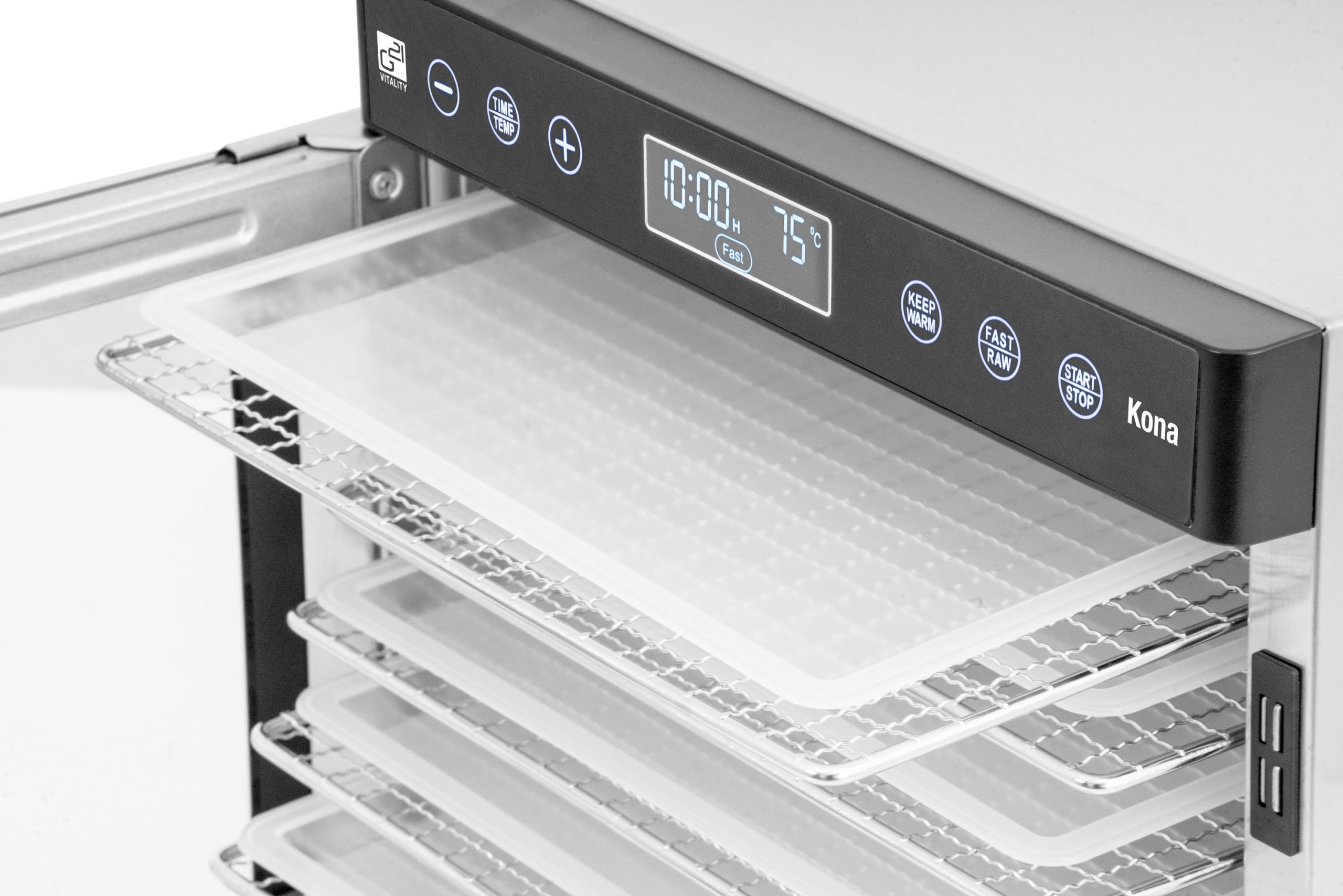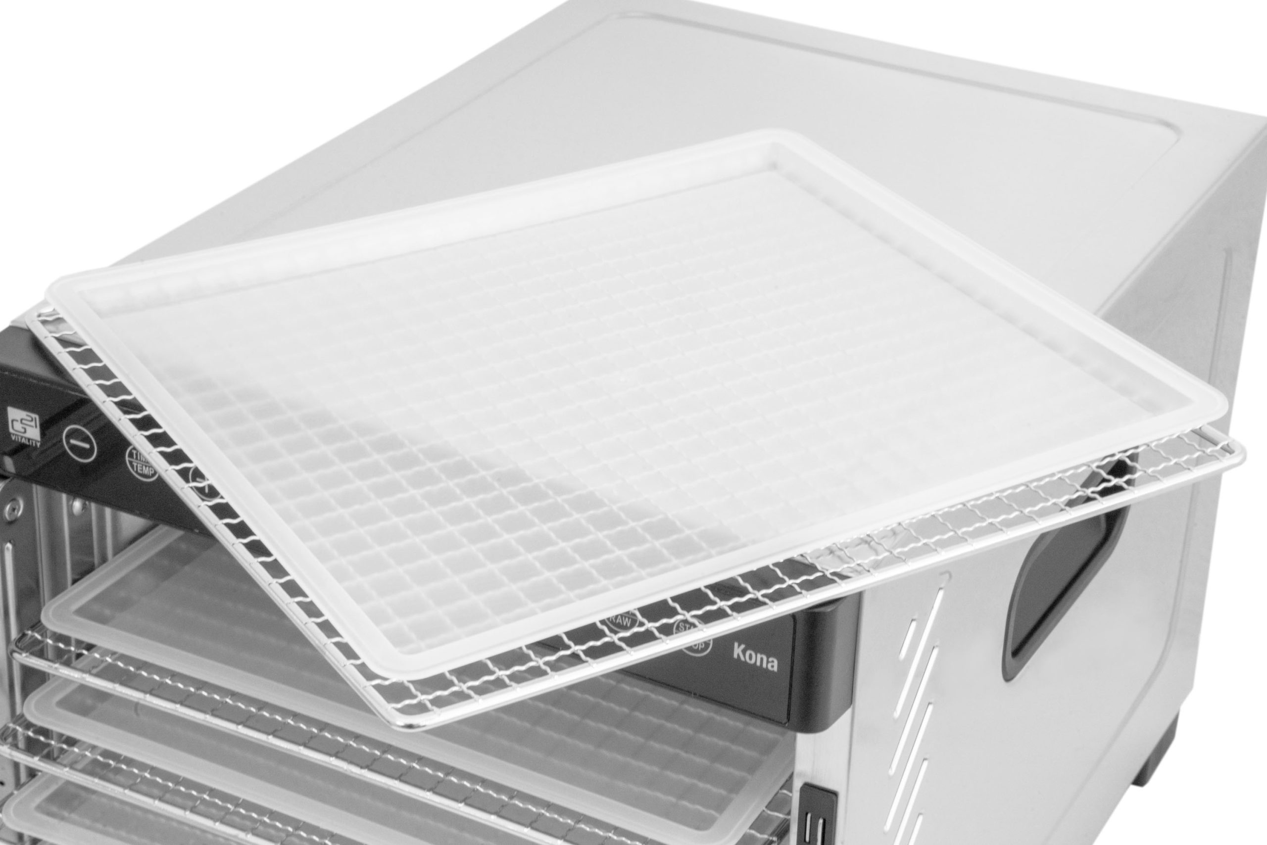 A folyékony összetevők szárítására szolgáló G21 szárítóbetét tapadásmentes, így semmi sem tapad hozzá. 25 x 27,5 cm-es méretével gyönyörűen csúszik az időzítővel ellátott G21 Kona szárítóba. A szárítótálca felülete könnyen mosható, csak száradás után öblítse le vízzel. Többé nem kell halogatni a finomságok elkészítését az utólagos takarítás kilátásba helyezése miatt 🙂