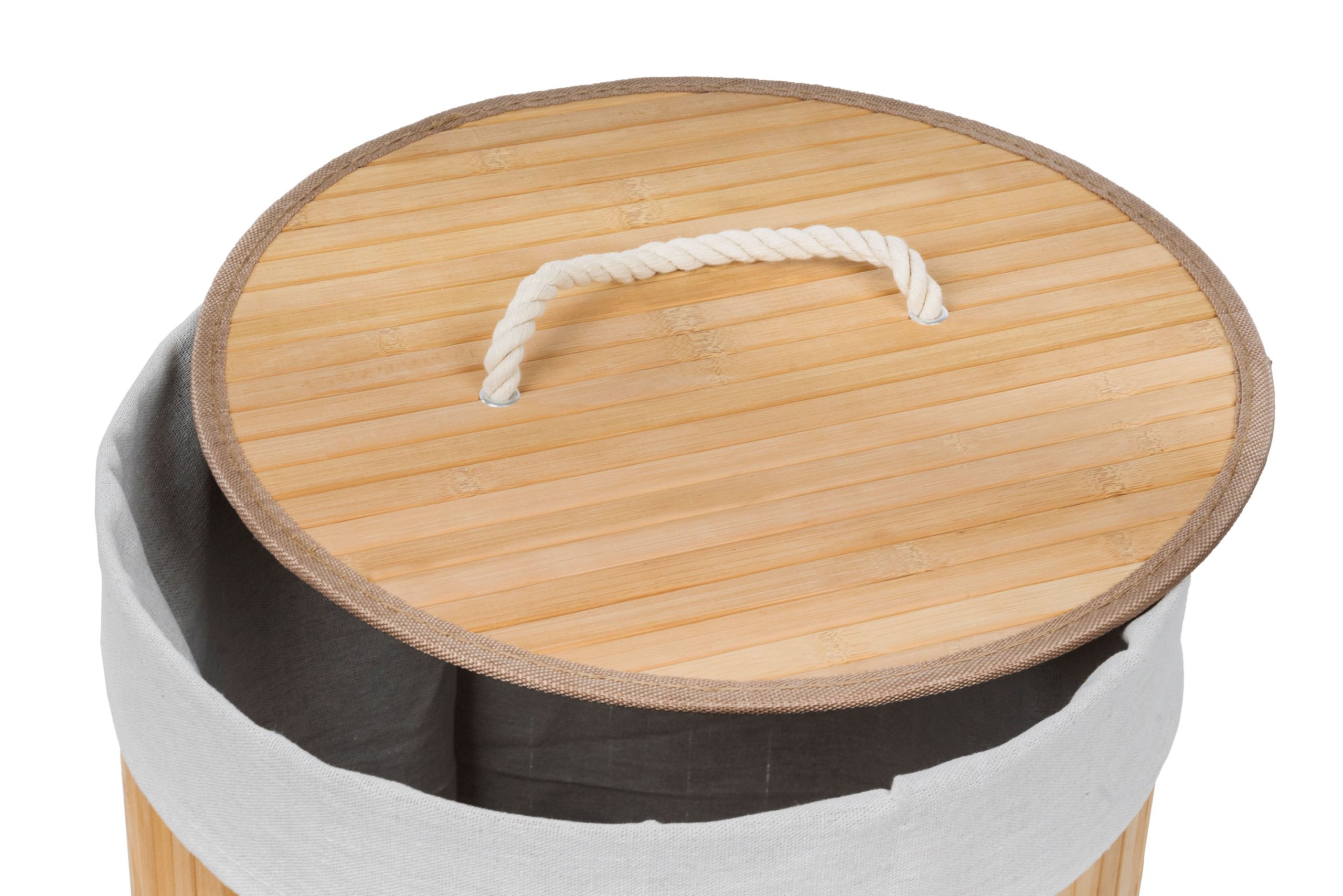G21 szennyeskosár 55 l, bambusz kerek fehér kosárral