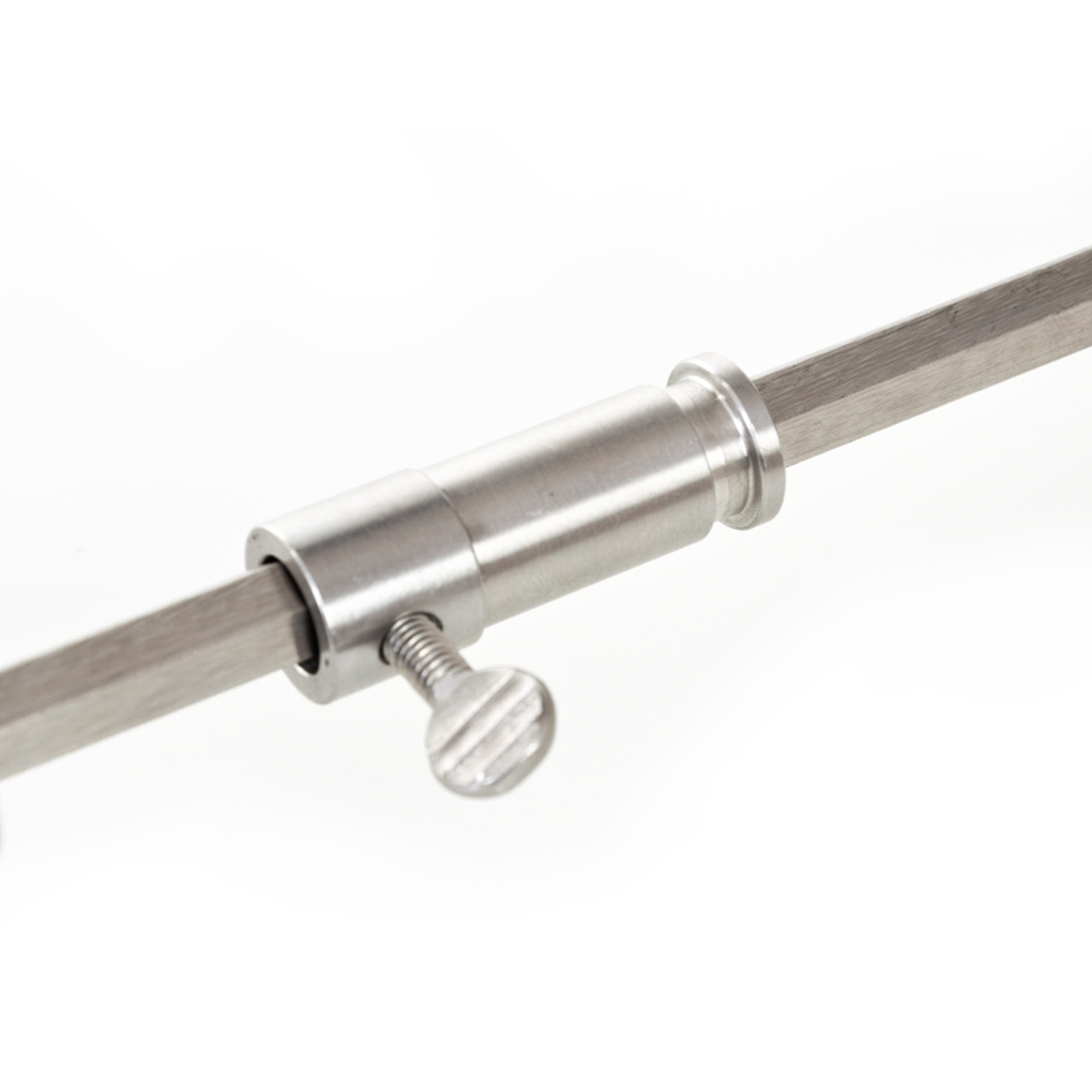 A nyárstű két rögzítő rozsdamentes acél lapot és csavarokat tartalmaz:
