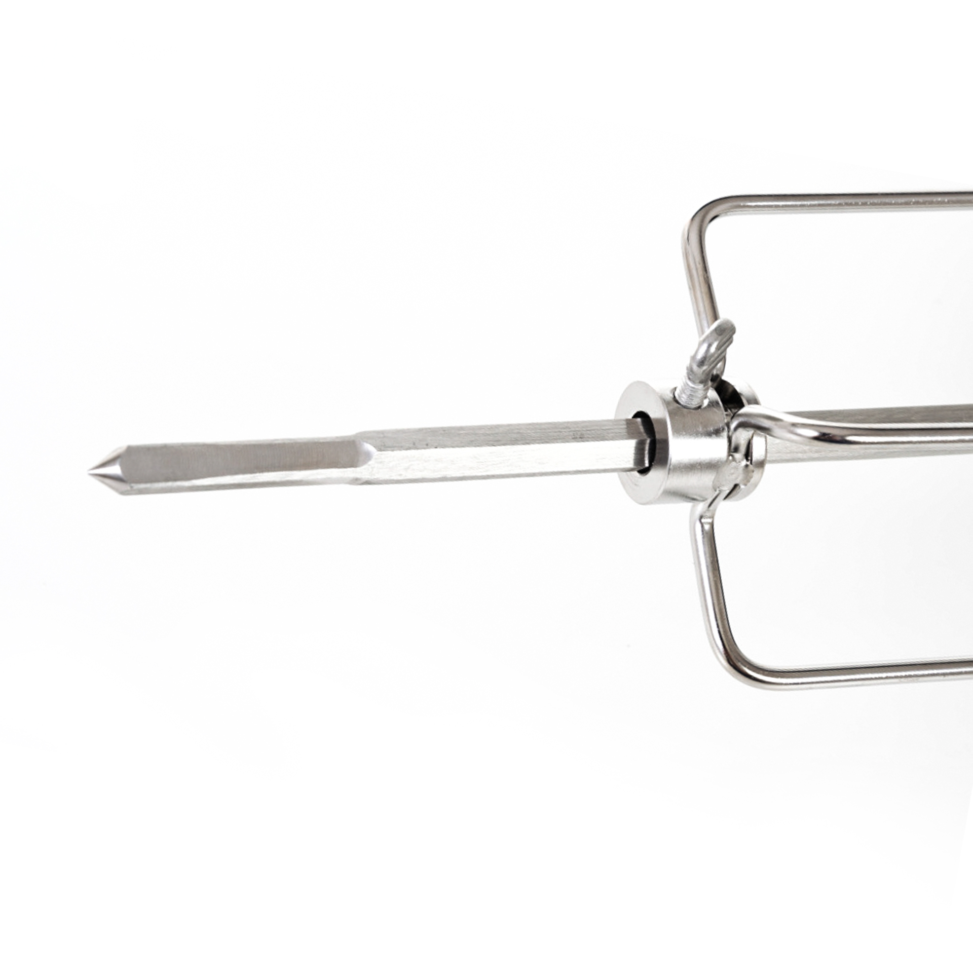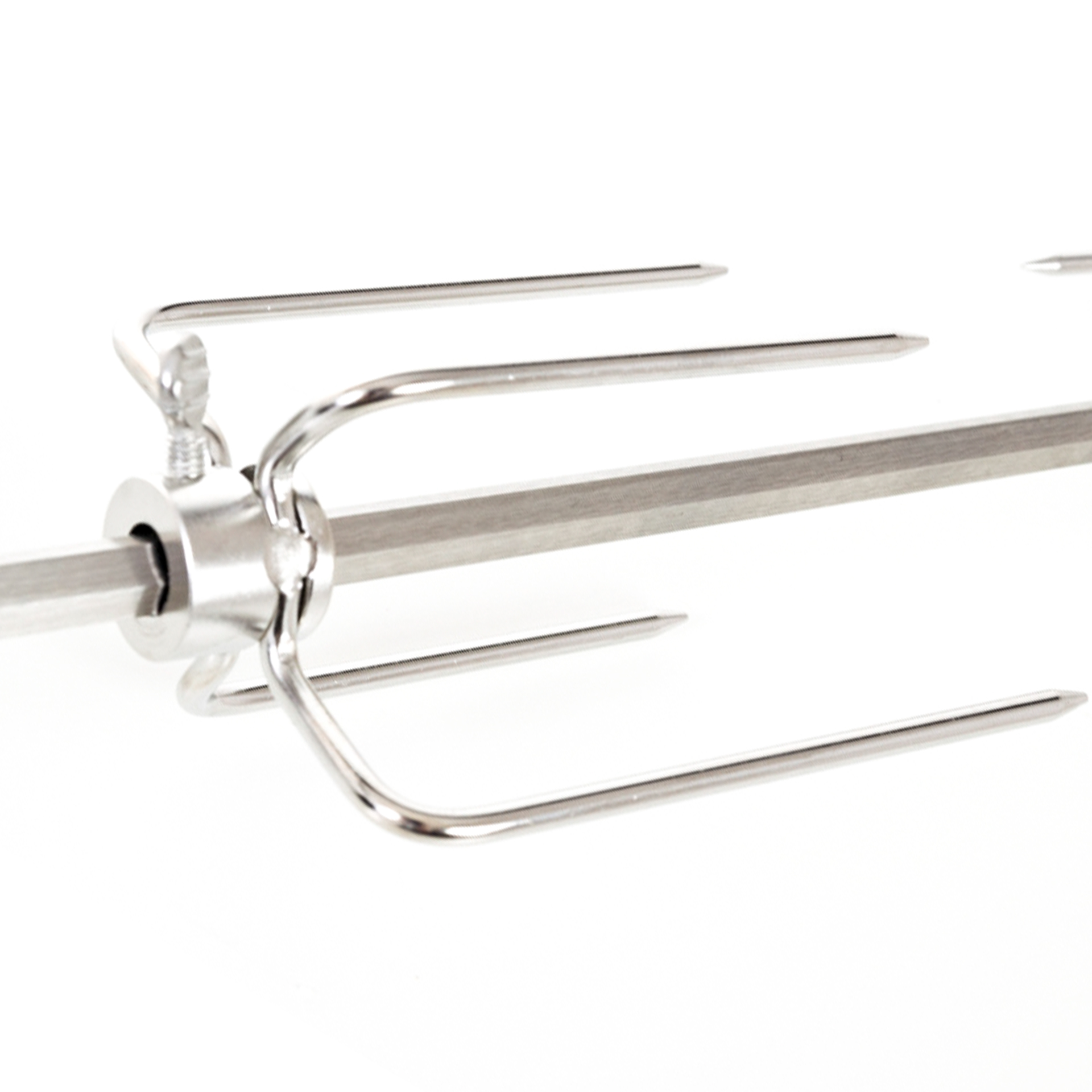 A motoros grillnyárs rozsdamentes acélból készül és mindkét oldalán négy tűvel van ellátva, rögzítő csavarokkal kiegészítve, amelyeknek köszönhetően a tűket saját igényei szerint állíthatja be.