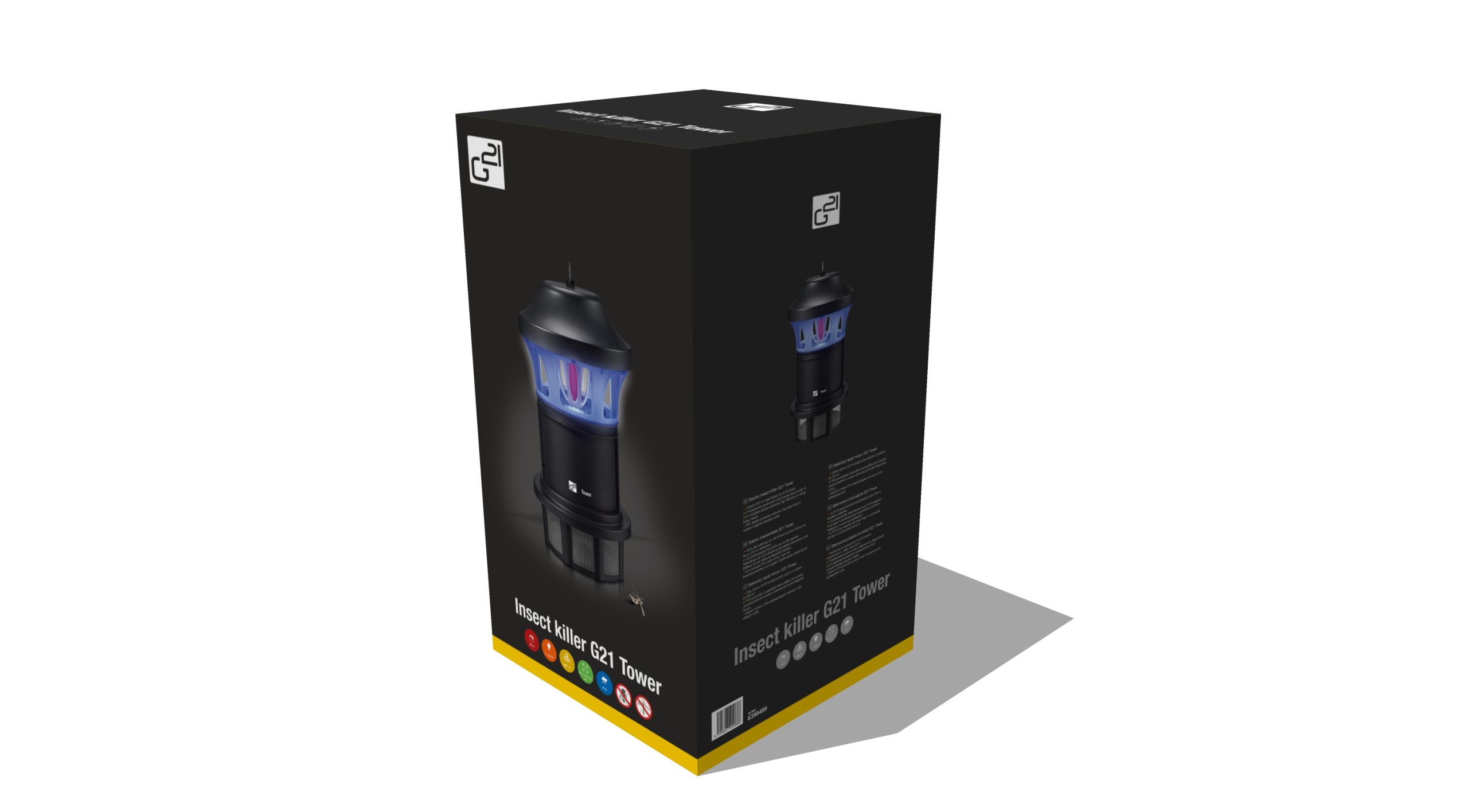 A G21 Tower rovarcsapda akár 300 m2-es hatótávolsággal egy energiatakarékos UV-A lámpát, egy csövet reflektorral, egy erős szívóventilátort, egy biztonsági eszközt a beszorult rovarok szivárgása ellen és egy gyűjtődobozt tartalmaz.