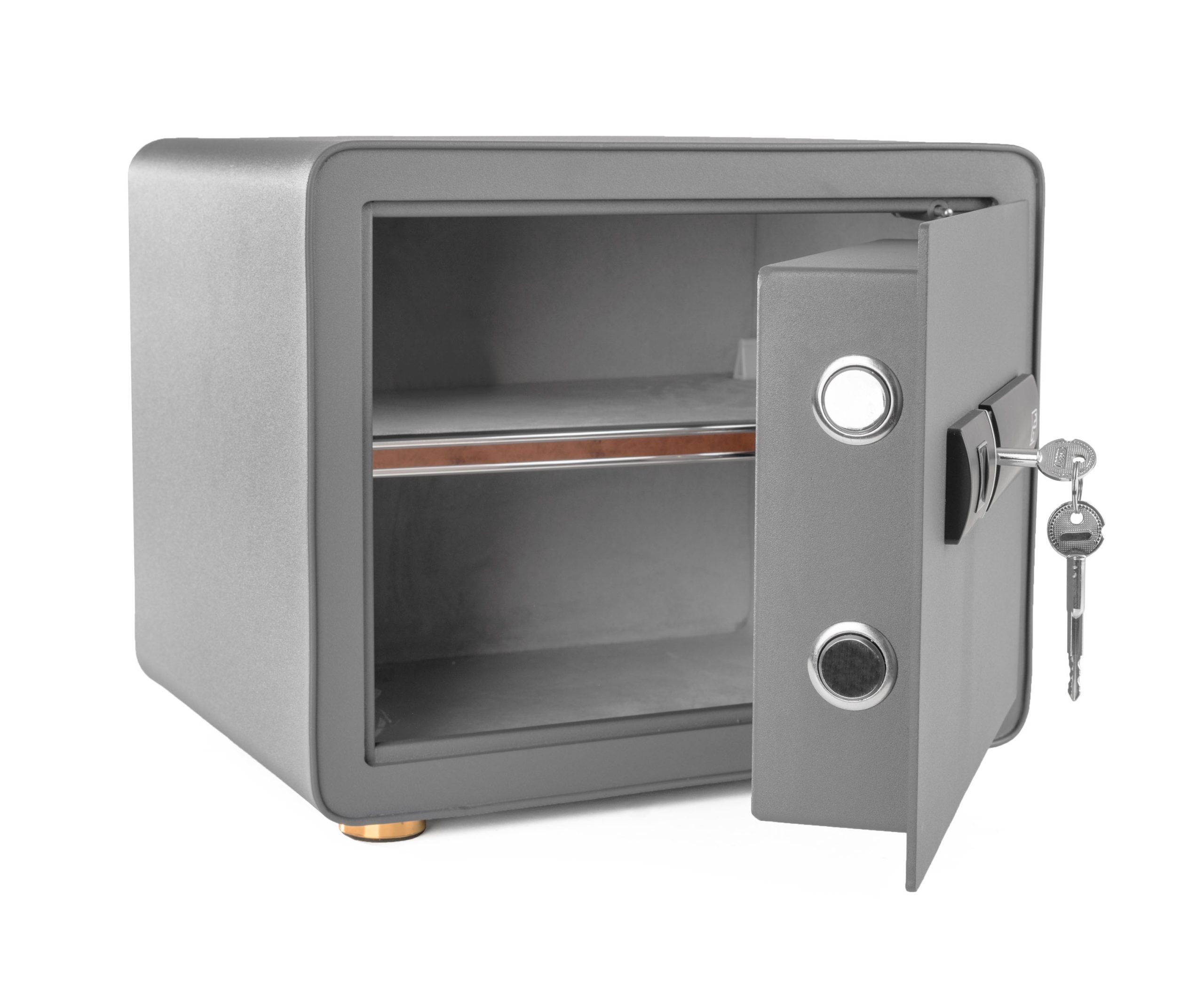 A G21 széfhez eltávolítható polcot adtunk, így egyszerűen testre szabhatja a belső teret. Legyen szó dokumentumokról, ékszerekről vagy értékes elektronikáról, 23,6 liter tárolóhely áll rendelkezésére.