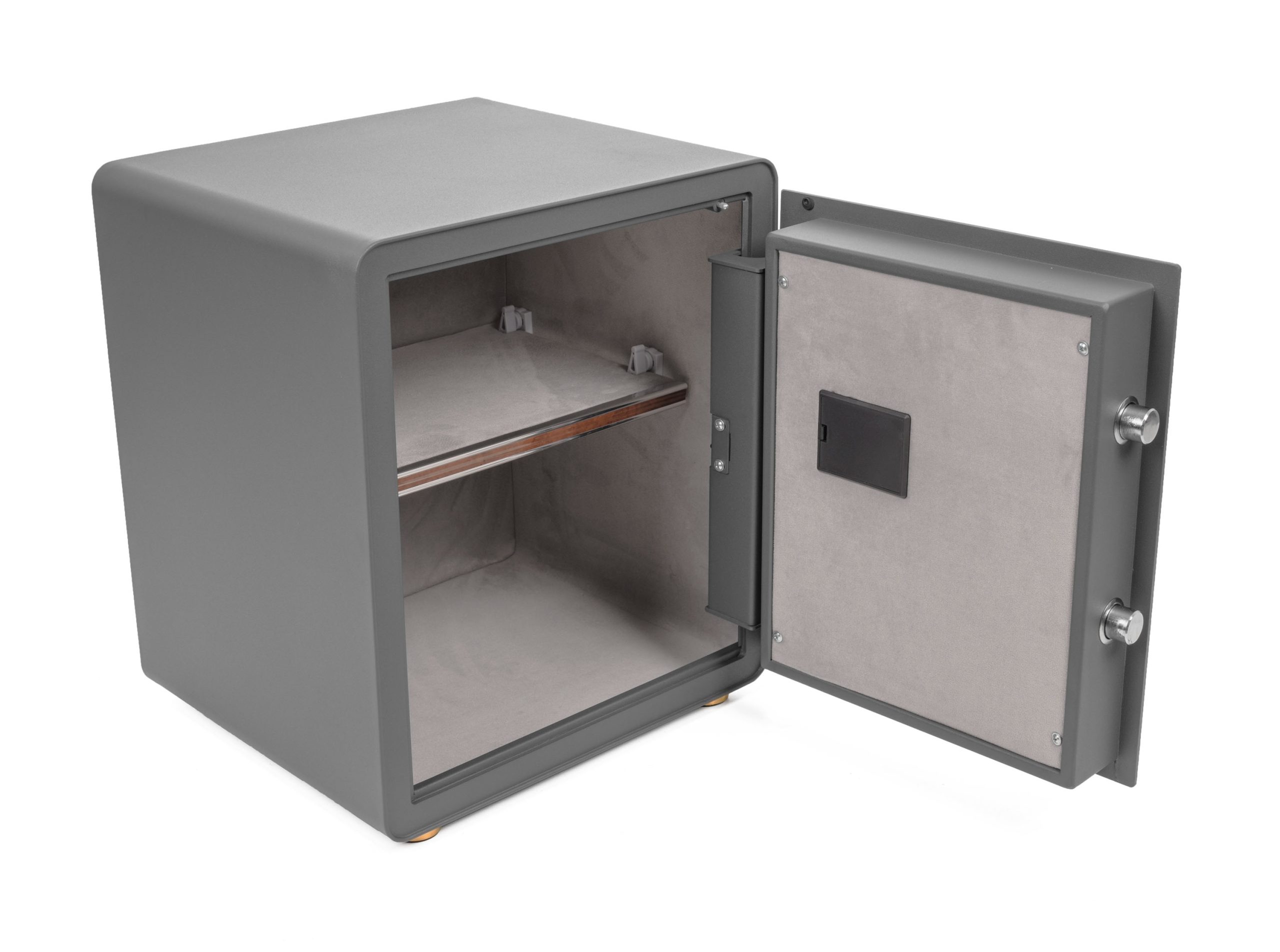 A széfhez kivehető polcot mellékeltünk, amellyel a belső teret a tárolási igényeihez igazíthatja. Akár dokumentumokat, ékszereket vagy értékes elektronikát tárol benne, a 46 literes kapacitás bőséges helyet biztosít.