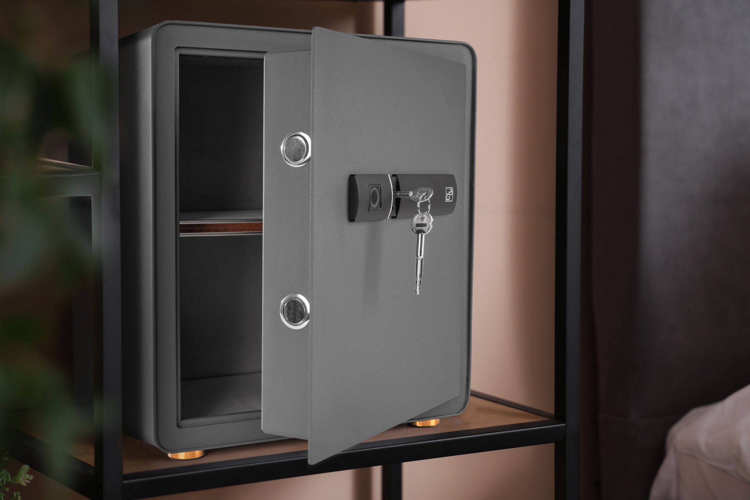 A biztonságnál a részletek számítanak. Értékeihez gyorsan, kényelmesen és biztonságosan férhet hozzá – jelszavak nélkül. Az ajtót biometrikus zár védi, amely egyetlen érintéssel, másodpercek alatt nyit. Ha az elemek lemerülnek, használja a mellékelt biztonsági kulcsot.