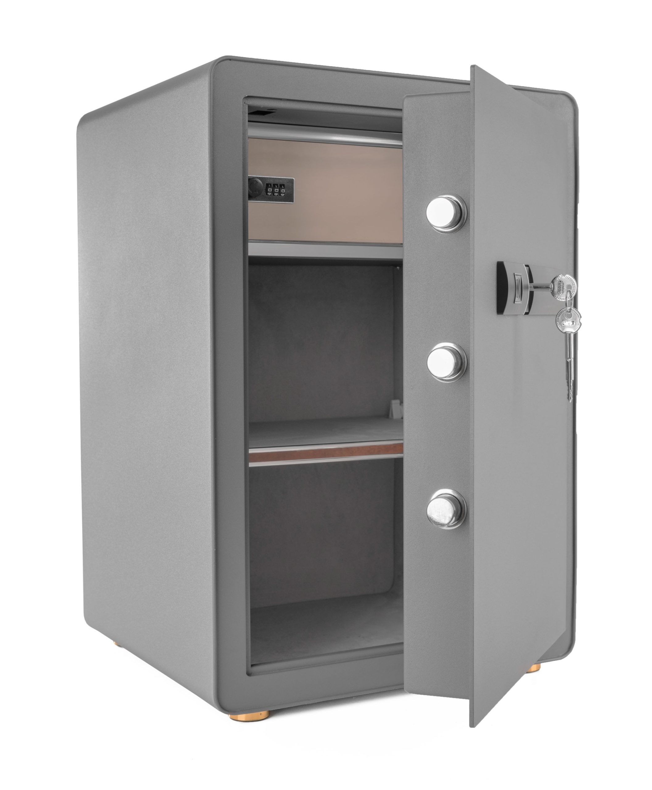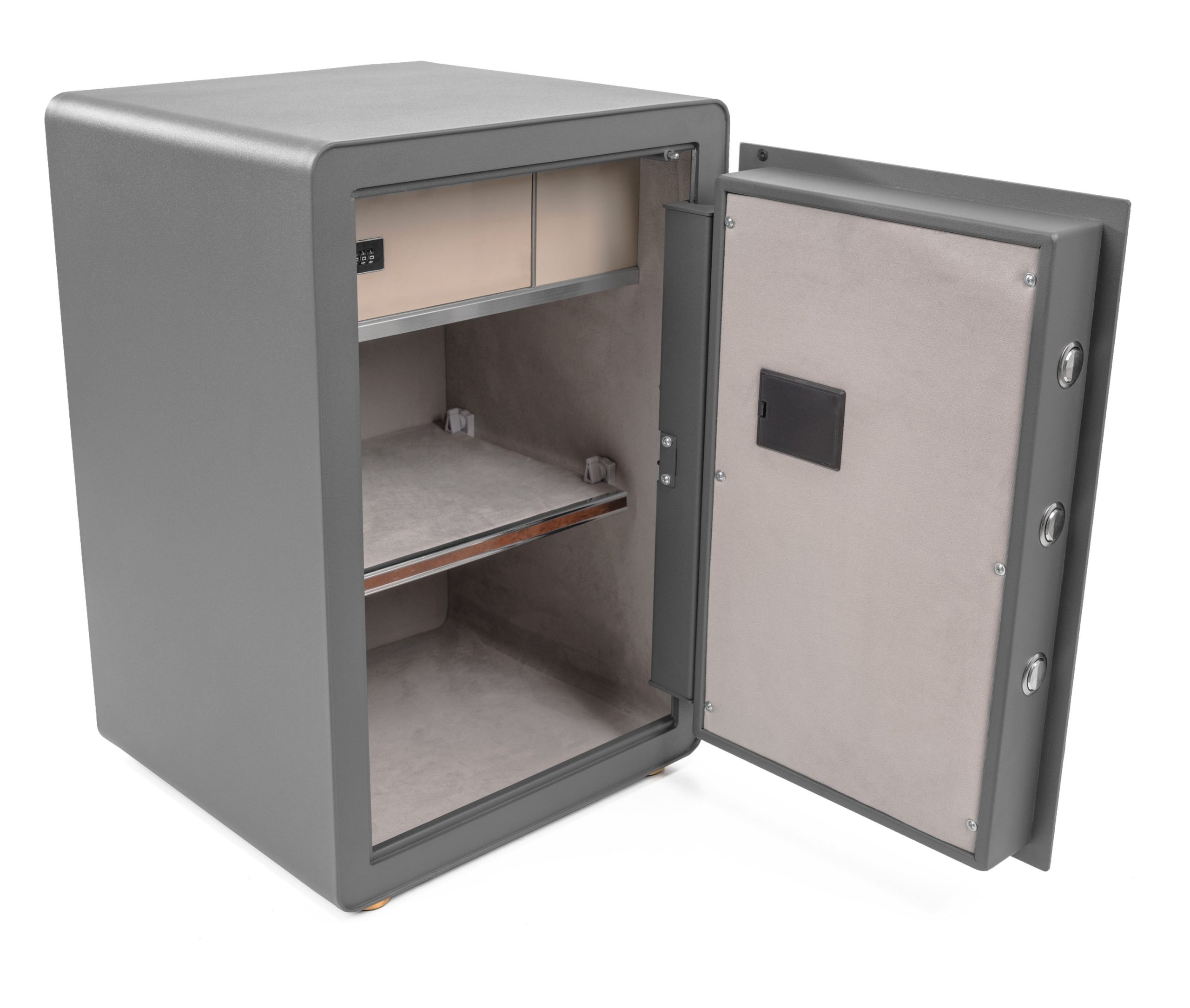 A G21 széfhez hozzáadtunk egy eltávolítható polcot, amellyel könnyedén testre szabható a beltér. Ezen felül található még belül egy praktikus zárható rekesz külön számzárral, további biztonságot nyújtva. Legyen szó iratokról, ékszerekről vagy elektronikáról, mindig elegendő hely áll rendelkezésre: 51,6 liter.