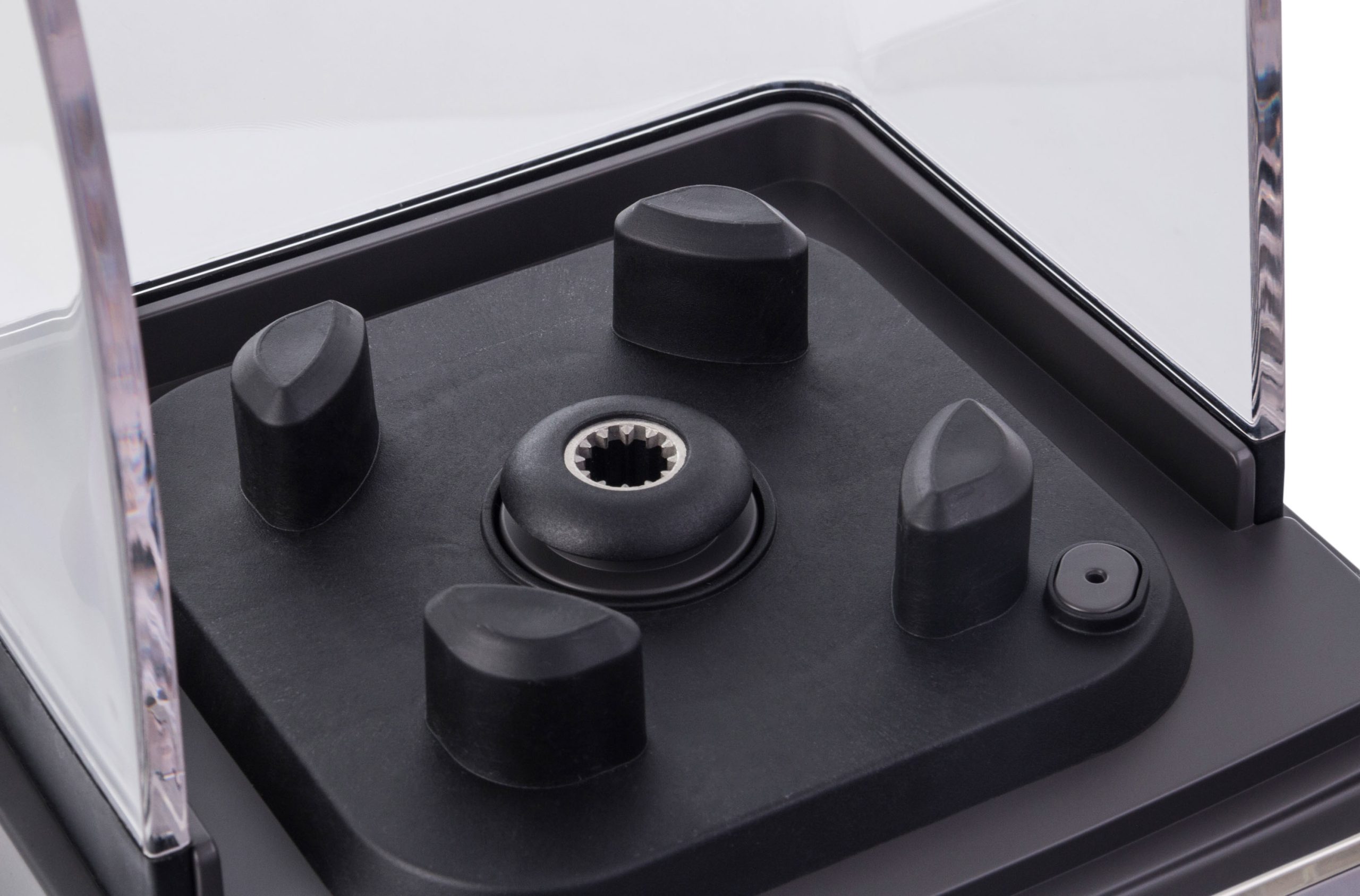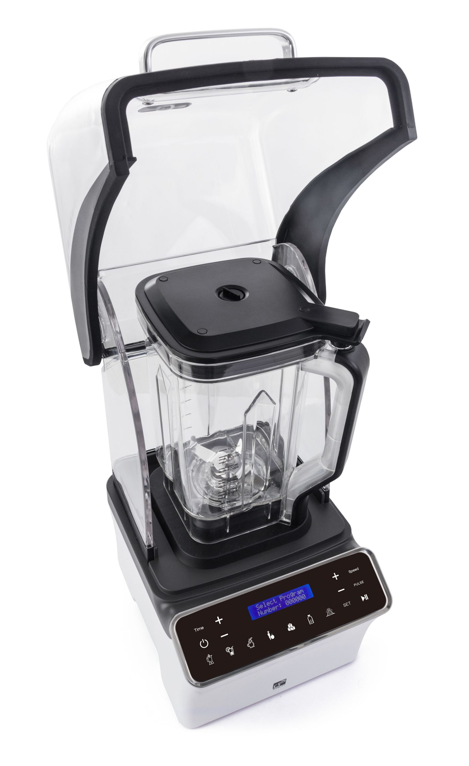 Ennek a vonzó, modern kialakítású asztali keverőnek a nagy előnye a hangelnyelő burkolat a zajszigeteléshez. A G21 Ultimate turmixgép működése ezért jelentősen halkabb, mint a többi asztali turmixgép. A hangszigetelő burkolat átlátszó, így nem akadályozza a rálátást a keverőedény tartalmára. A fedél ugyanakkorbiztonsági biztosítékként is szolgál – a keverő csak akkor indul el, ha a fedelet megfelelően lezárjuk.