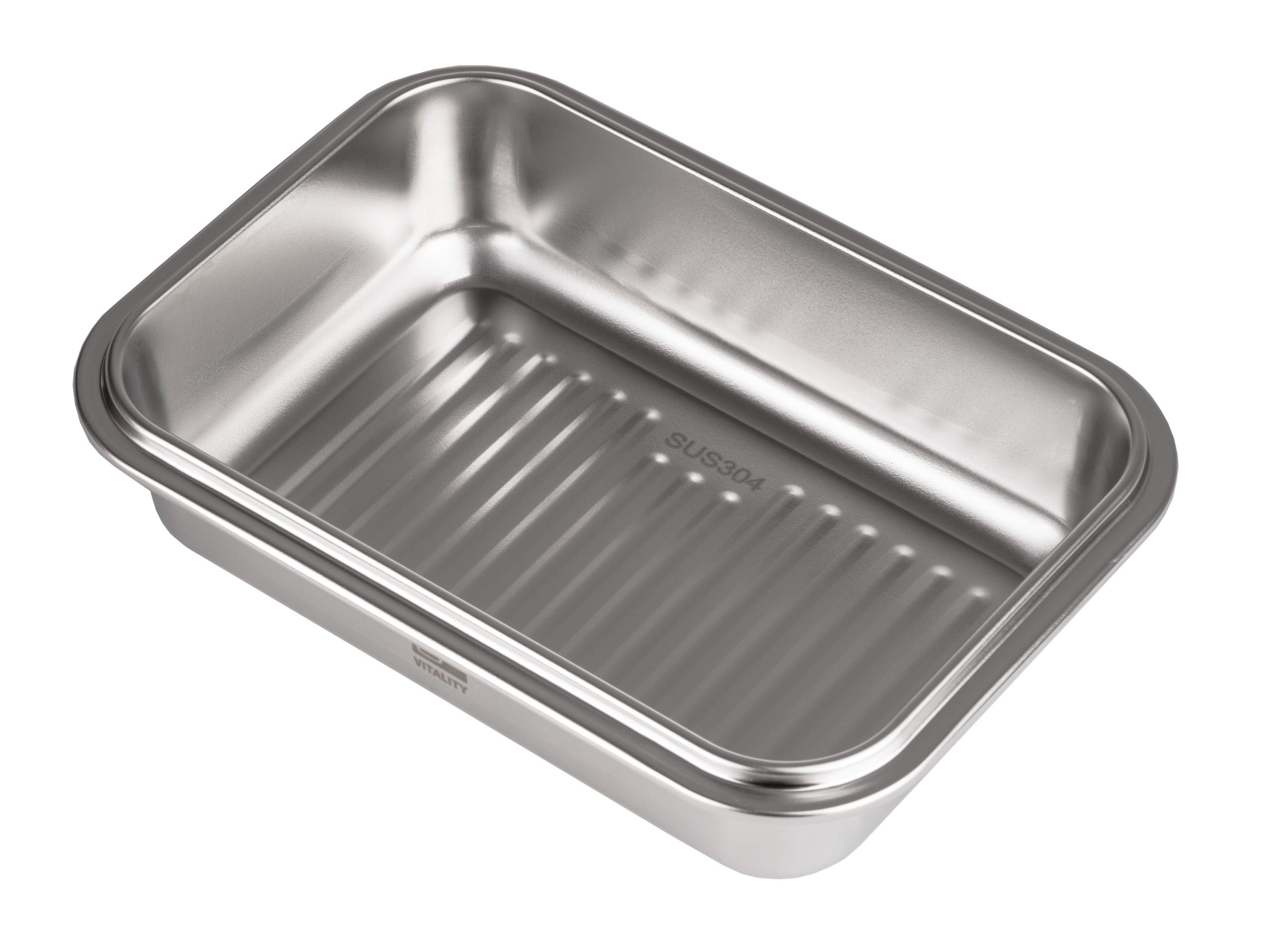 A doboz kiváló minőségű rozsdamentes acélból készült, amely teljesen biztonságos az élelmiszerekkel való érintkezéshez. Az anyag nem befolyásolja az étel ízét vagy színét, nem rozsdásodik, és -100 és +400 °C közötti hőmérsékleten is használható. Így alkalmas fagyasztásra és sütésre is (fedél nélkül). A sima, nem porózus felület megakadályozza a baktériumok lerakódását és könnyen tisztítható – ideális otthoni, éttermi és kültéri használatra is.
