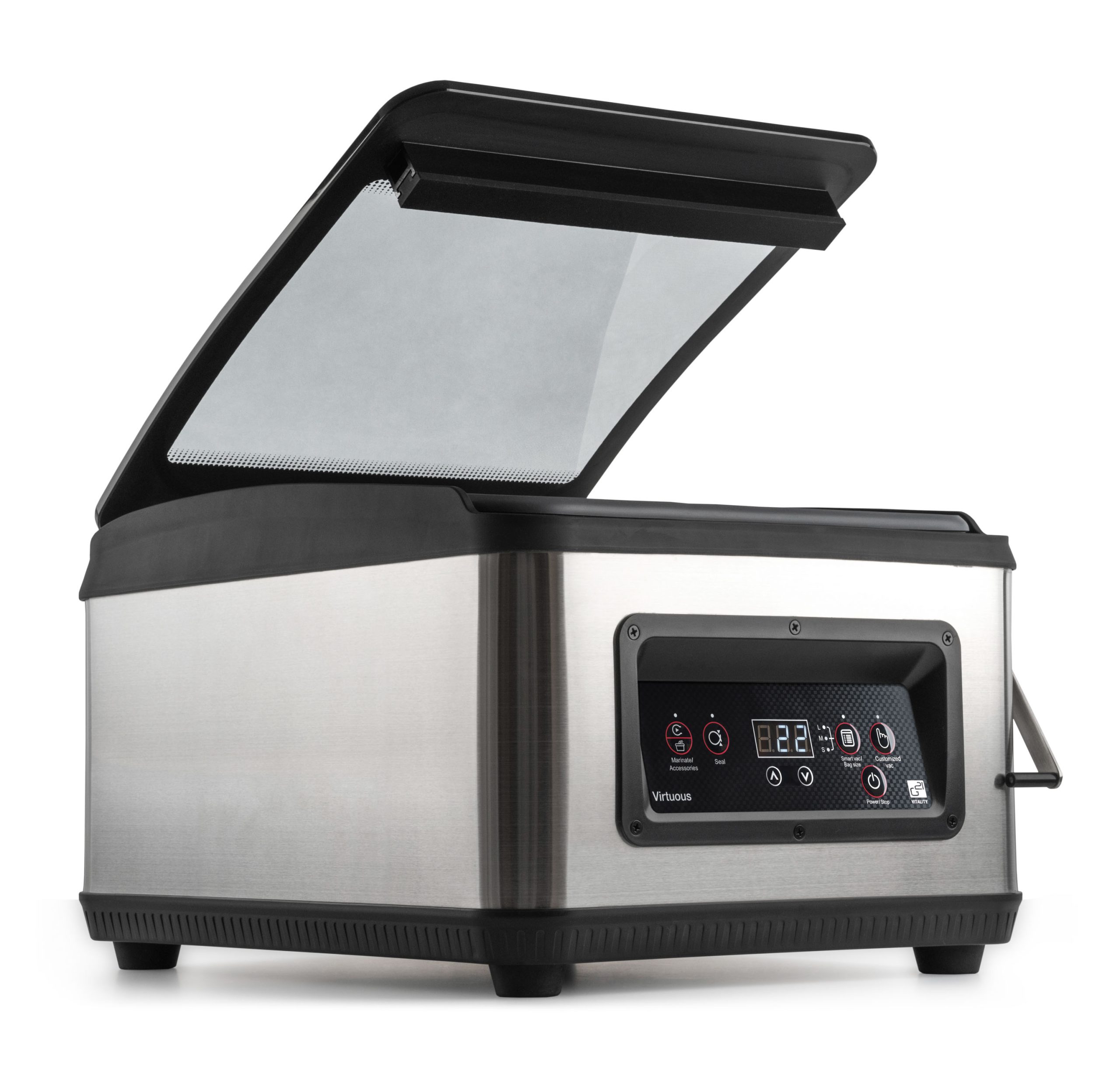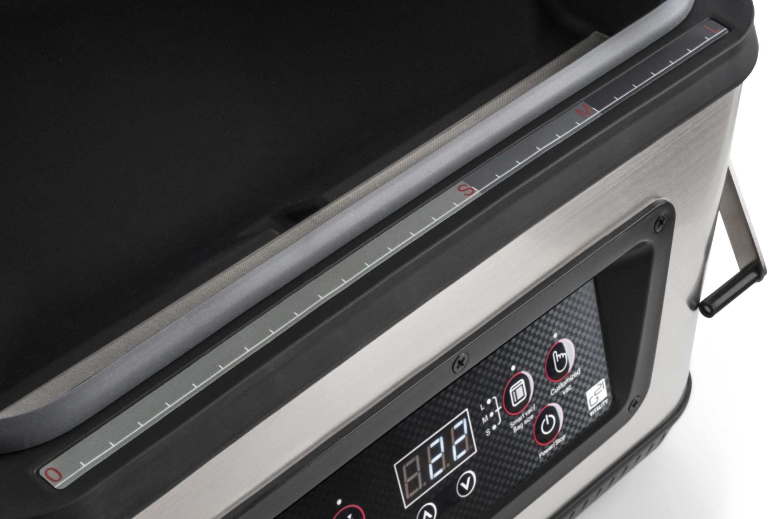 Smart Vac funkció – A Smart Vac funkcióval a kijelző alapján kiválaszthatod a zacskó méretét, és a vákuum magától megkülönbözteti az étel méretét. Ennek megfelelően kiválasztod a megfelelő programot és időt a tökéletes vákuumhatás érdekében.